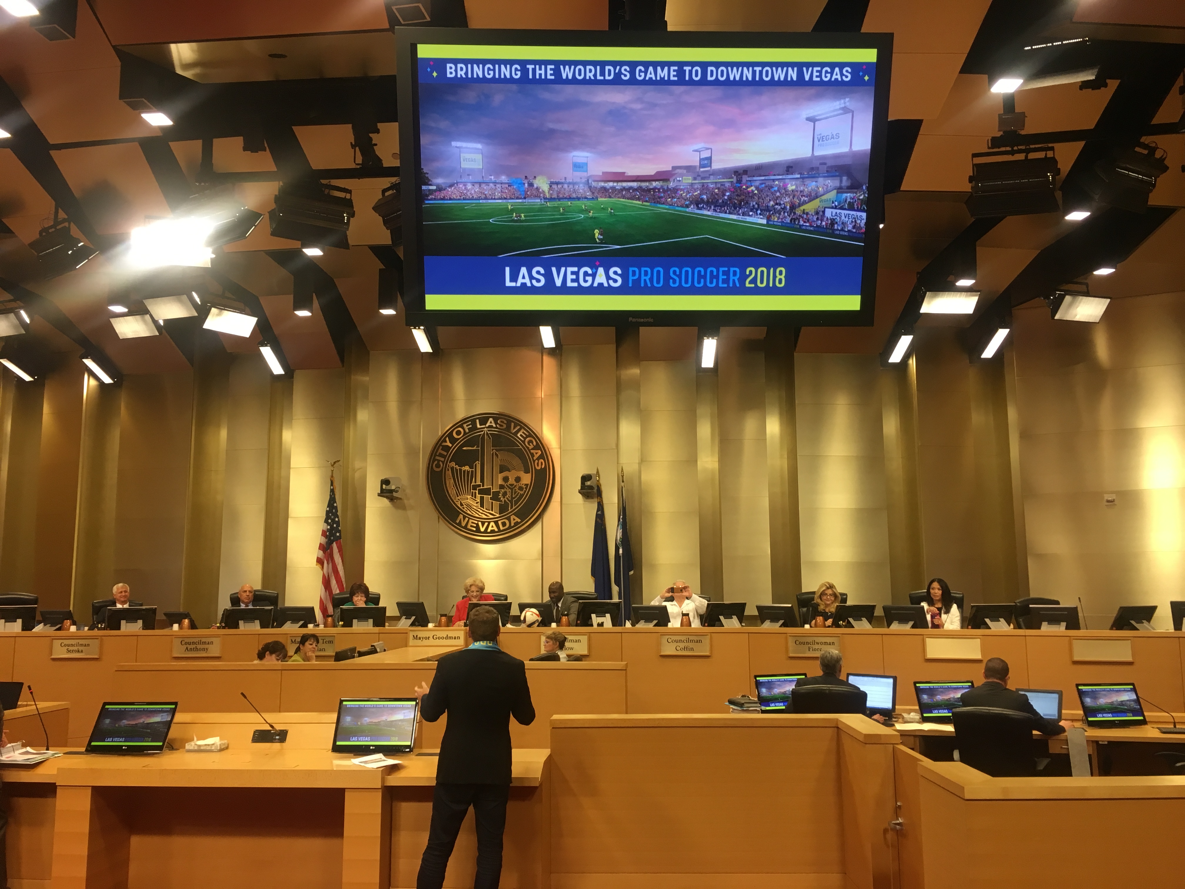 “This town will embrace professional soccer,” USL team owner Brett Lashbrook told the Las Vegas City Council. Technically, Lashbrook is owner of Las Vegas Pro Soccer, LLC.