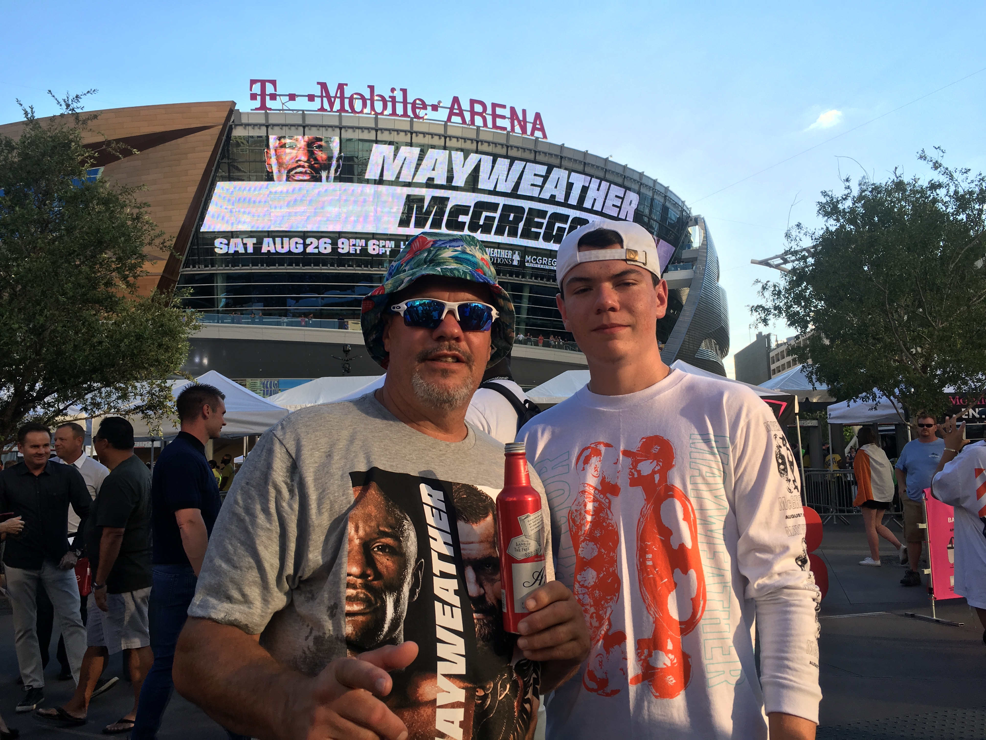 “The prices are out of hand. Right now, the prices are hyped for the ‘Money Fight’ and they’re inflated,” said Sekelsky, wearing a gray Mayweather-McGregor T-shirt, gray shorts, red Nike sneakers and a flowery fishing hat.