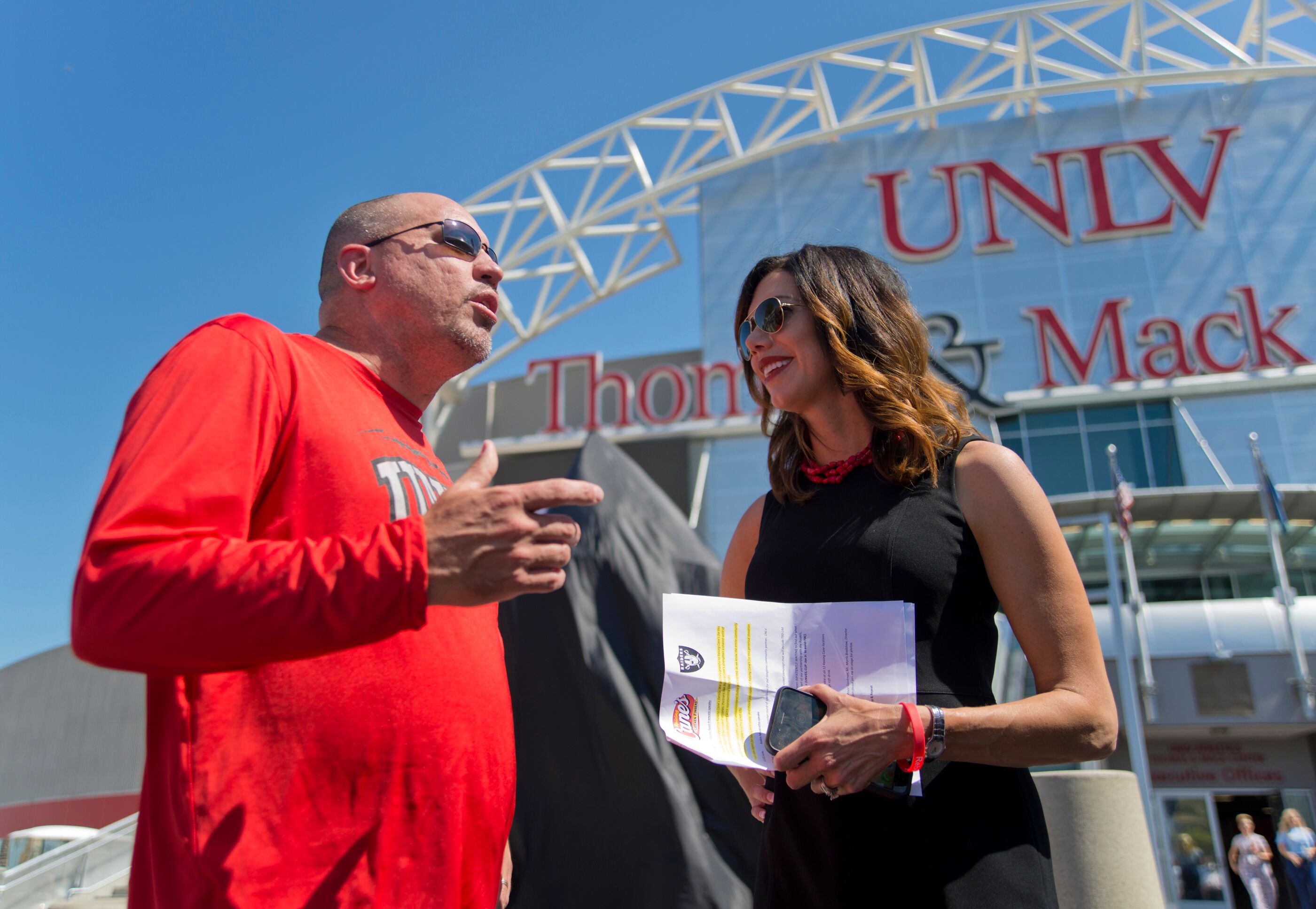 Athletics Director Desiree Reed-Francois was more reticent to comment on the “spirit logo” when approached at the Raising Cane’s sponsorship announcement Wednesday. She said that her department will be “very strategic on how” it will use the new logo and will be “fiscally responsible.” That was all she had to comment on the new logo. It should be noted, a university official told LVSportsBiz.com, that the process to create a new logo began before Reed-Francois began her new gig as UNLV AD June 1.