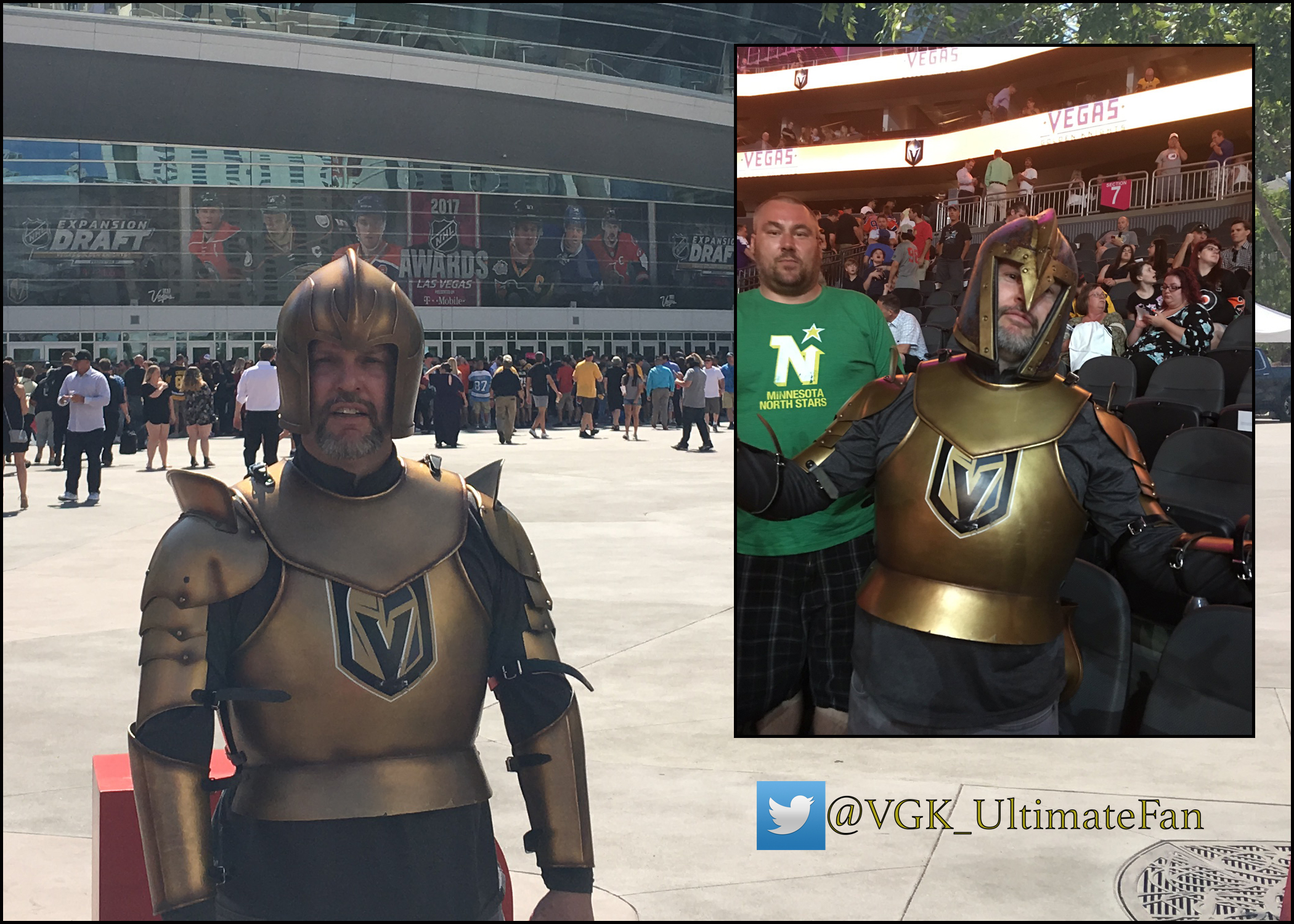They are Shawn Hickey, a 46-year-old Station Casinos bartender and hobby photographer who is known as the guy who wore the Golden Knights armor outfit to the NHL Awards Show/Golden Knights draft event at T-Mobile Arena June 21.