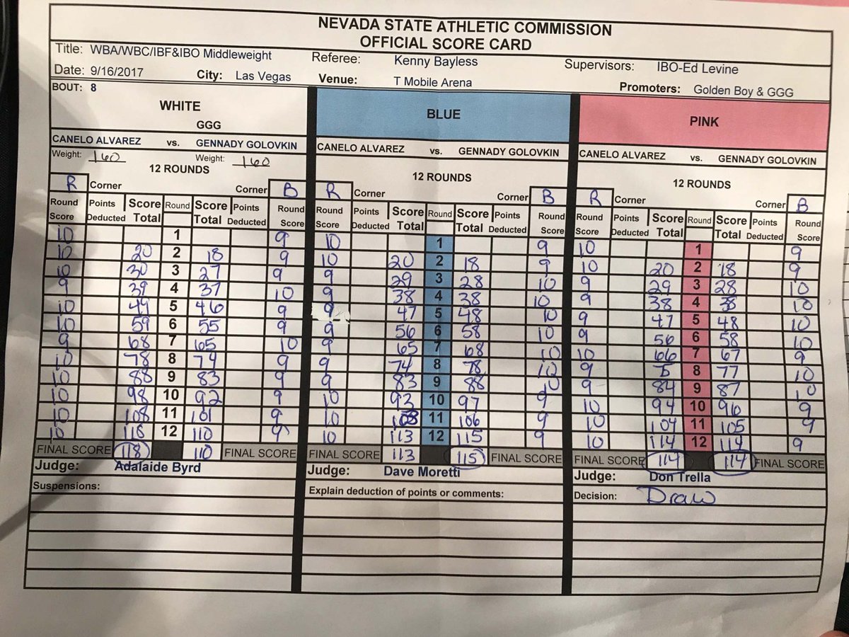 Judge Adalaide Byrd’s score total of Alvarez over Golovkin