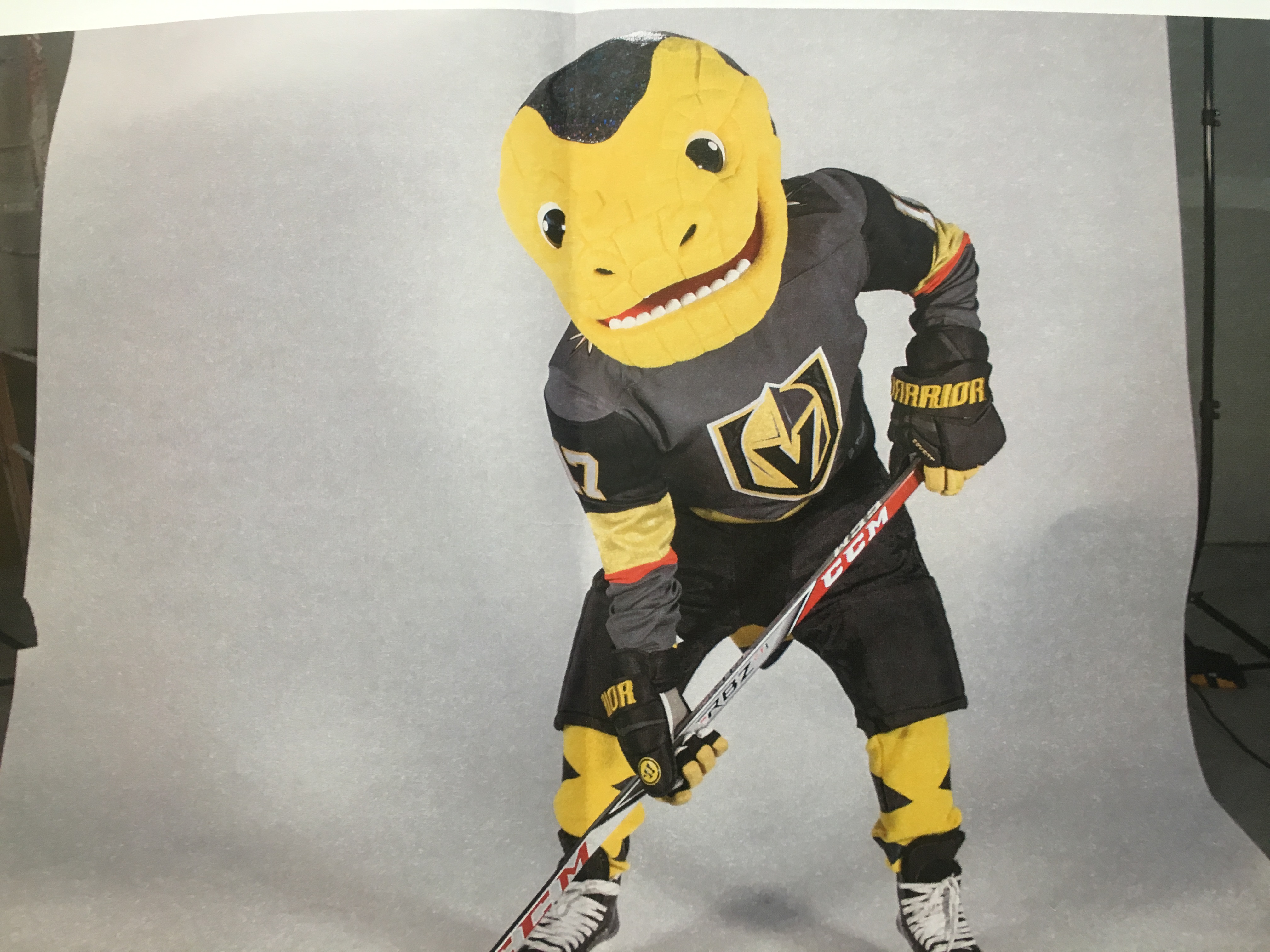 No, this rookie NHL team in Las Vegas found its mascot in the Nevada desert — a gila monster character named, “Chance,” who (as the VGK story goes) was empowered by his love for Golden Knights hockey to shed his reclusive, shy ways to become an endearing, skating “Golden” gila monster mascot for children and adults alike.