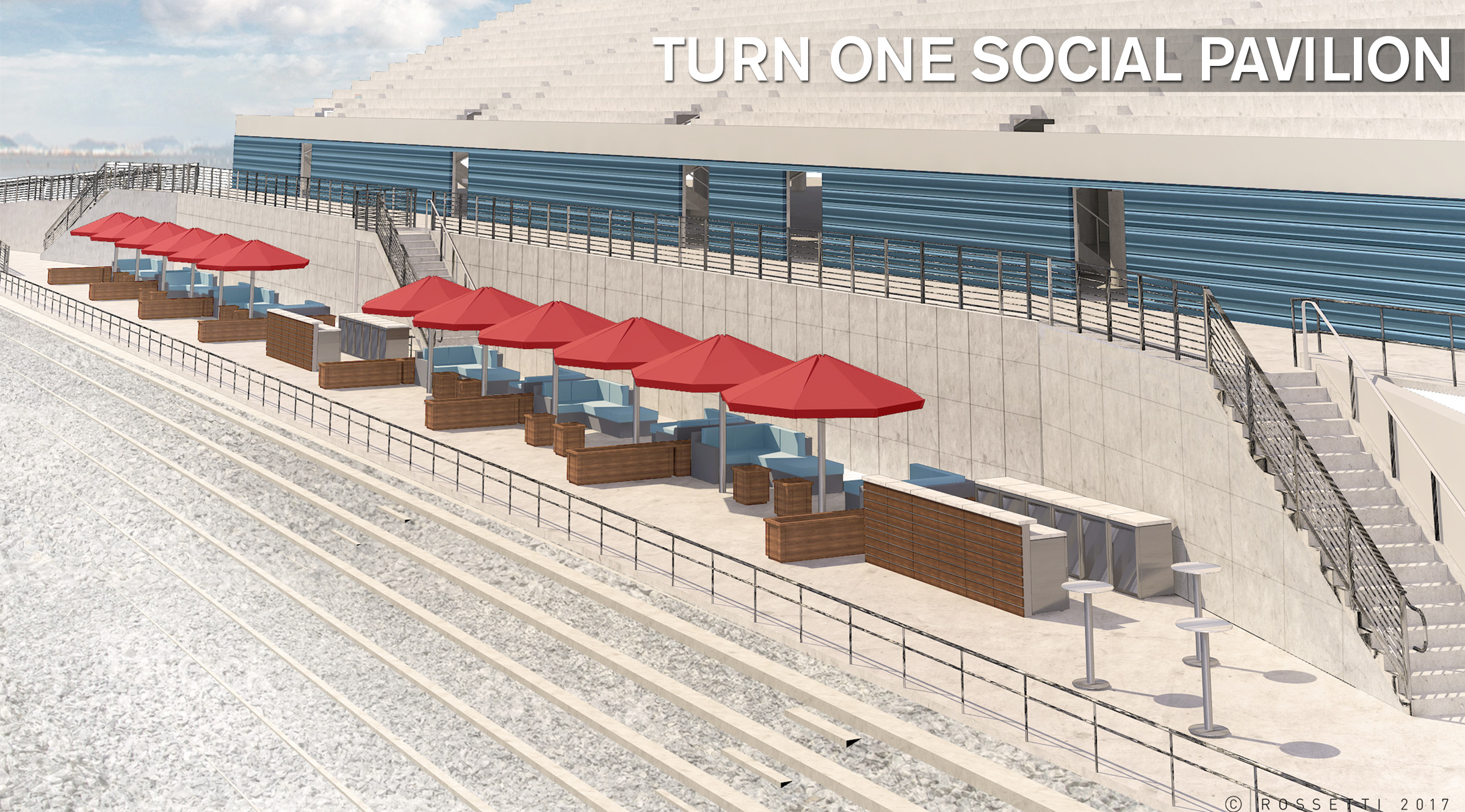 The race fan enhancements include three renovated clubhouses areas, the new “Turn One Social Pavilion,” two loge-box seat offerings and a racing-inspired interactive social lounge.