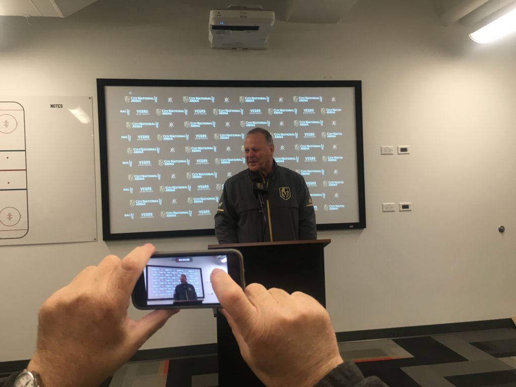 The sports writers filed into a room to ask Gallant questions about the game after we interviewed a few players in the Golden Knights locker room for a few minutes.