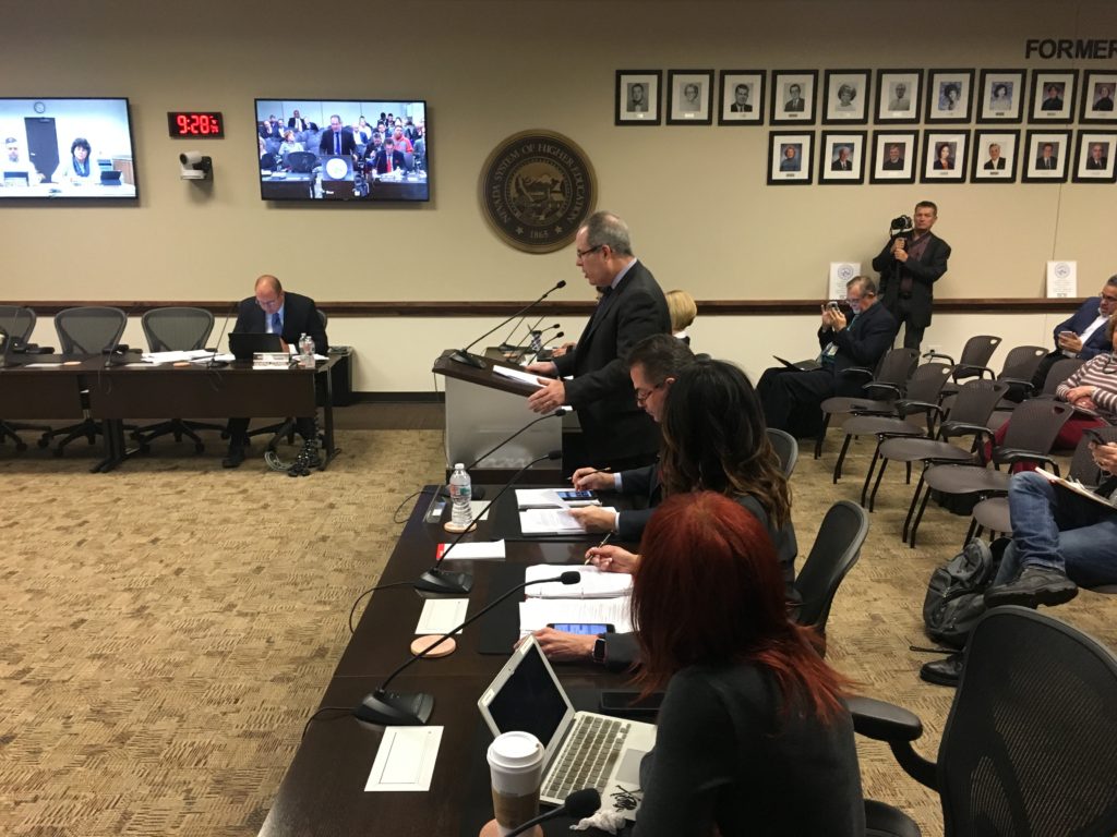 Dan Etna, an outside UNLV lawyer with the New York law firm of Herrick, Feinstein LLP, addresses the Nevada Board of Regents this morning.