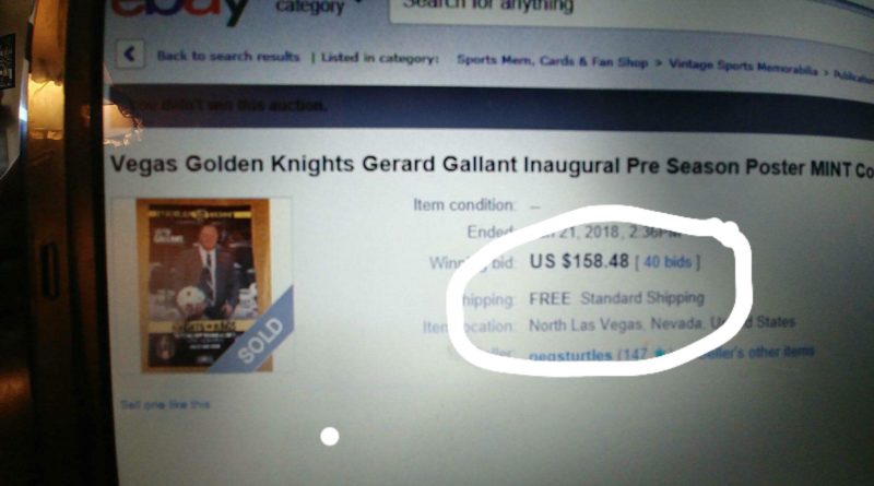 Fans are not just selling the posters that are picked up for free at the arena. Poster collector Luc Roy said a puck purchased at a Golden Knights-Blackhawks game for $15 at the arena’s Golden Knights Armory team store is being auctioned for as high as $600 on eBay.