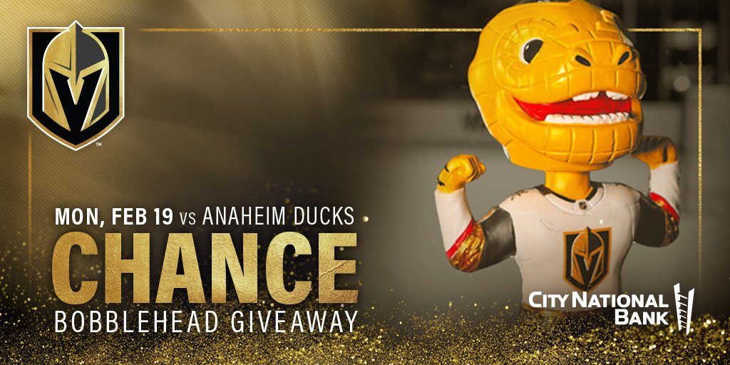 And now the first-place, first-year team is breaking new franchise ground with its first-ever bobblehead — and it will be Chance, not Marc-Andre Fleury, William “Wild Bill/Dollar Bill” Karlsson or James Neal.