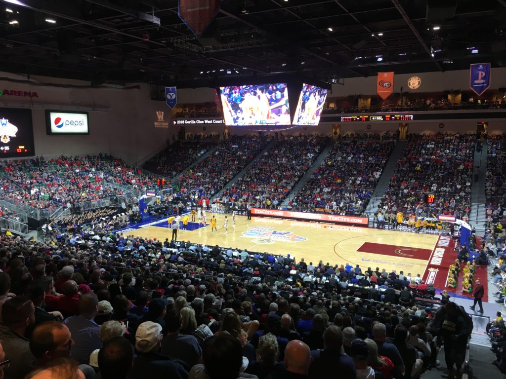 Indeed these Gonzaga fans are committed. The team that made it to the NCAA basketball title game last year before losing to national hoops brand North Carolina plays in a Spokane gym of only 6,000 seats. But the Orleans Arena, one of Las Vegas’ nicer mid-size arenas at 8,000 seats or so, was easily packed with Zags fans.