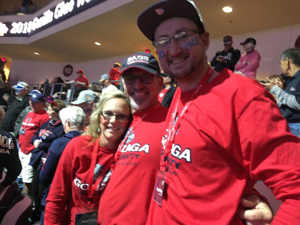 Zags fan Adam Carpenter, who came with family and friends who donned red and blue wigs for the game, said the Zags crowd in Las Vegas and attention to every play right to the end was part of the fans’ “hometown mentality.”