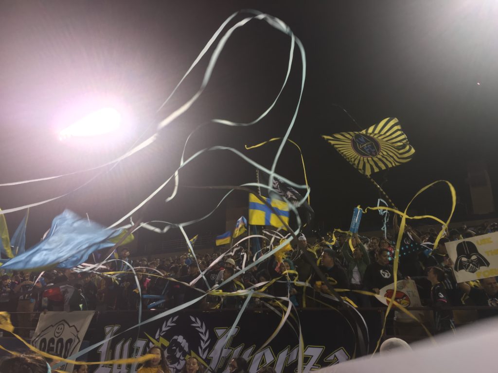 The team chanted, “Viva Lights,” in an effort to drown out the “puto” chant on goal kicks. It had mixed results as the “puto” chant could still be heard despite the “Viva Lights” chant.