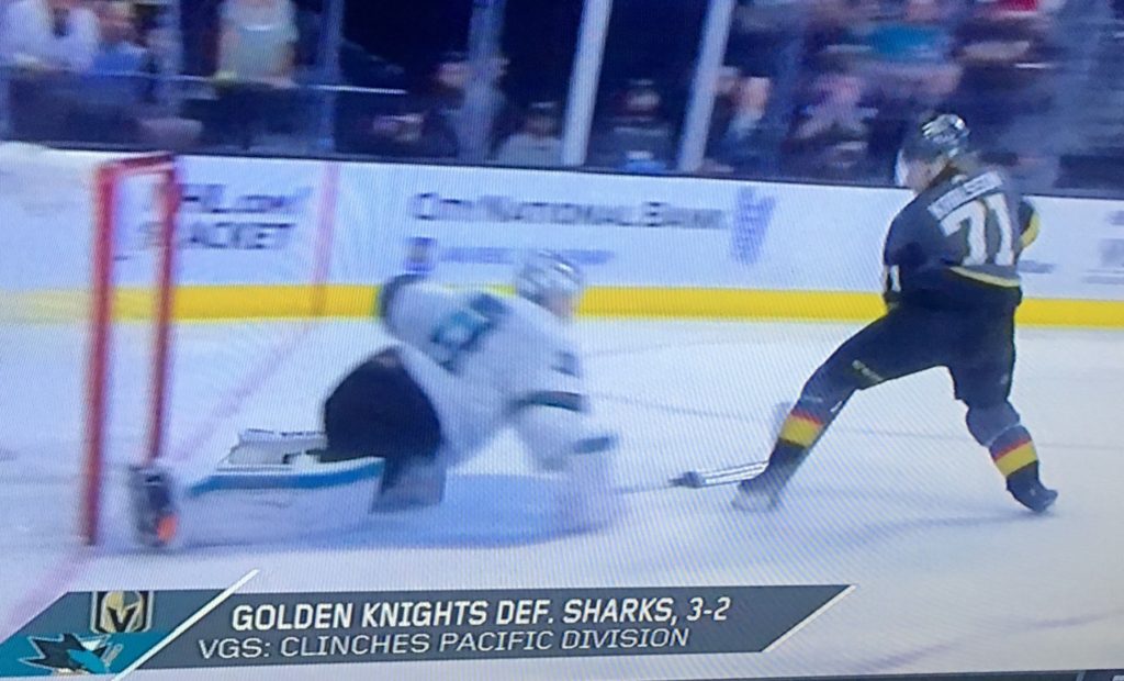 In doing so, the historic rookie NHL club clinched the Pacific Division against second-place San Jose with a 3-2 win over the Sharks with an SportsCenter Top 10 highlight-reel, short-handed, between-the-legs goal by that man, William Karlsson.