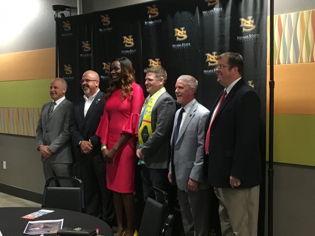 Bringing them together were Nevada State College’s Edith Fernandez, associate VP for community engagement, and Latin Chamber of Commerce President Peter Guzman, the enthusiastic voice for Latin businesses who said the teams and venues are economic development opportunities for his members.
