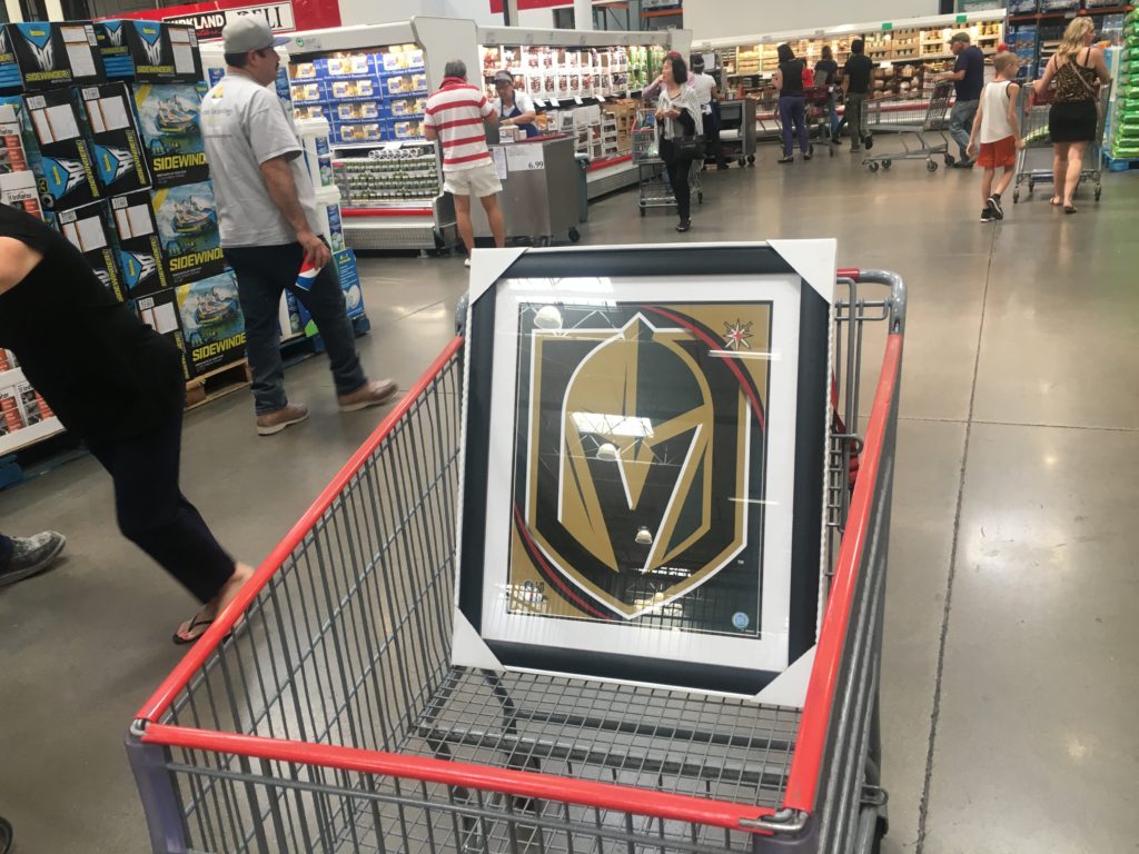 I was walking down an aisle at Costco today when a Golden Knights fan with a Golden Knights shirt was pushing a cart with a framed piece of Golden Knights artwork.