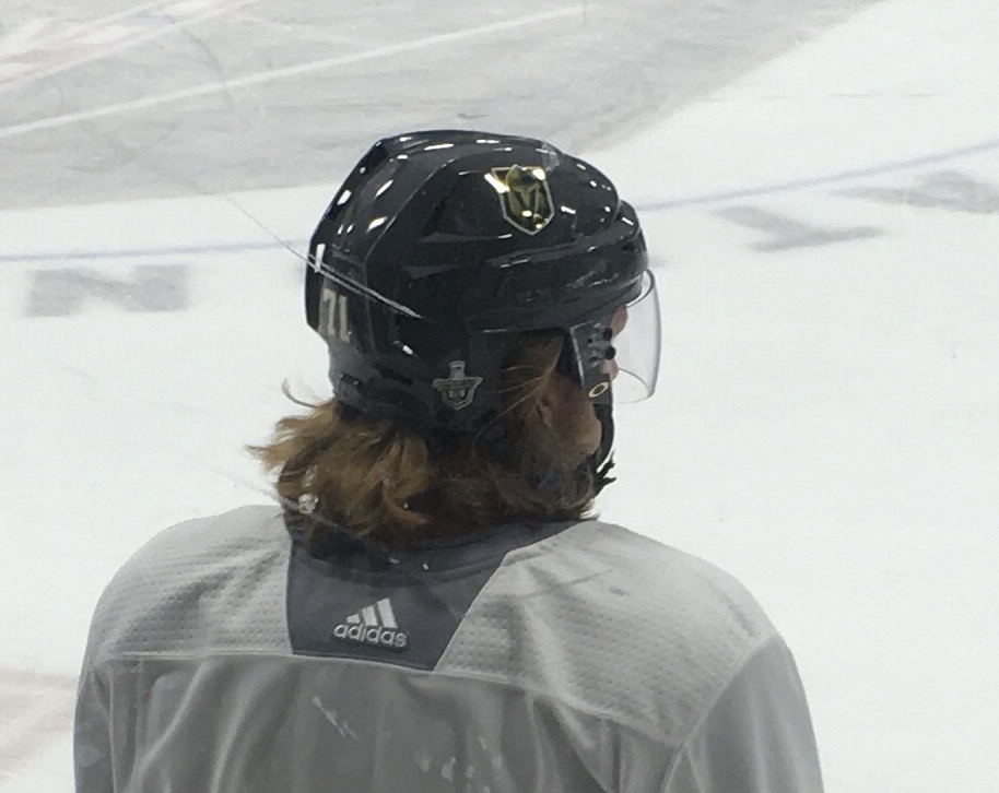 LVSportsBiz.com covered the Golden Knights practice Wednesday and saw Karlsson and his hair looking in a prime Stanley Cup playoff condition.