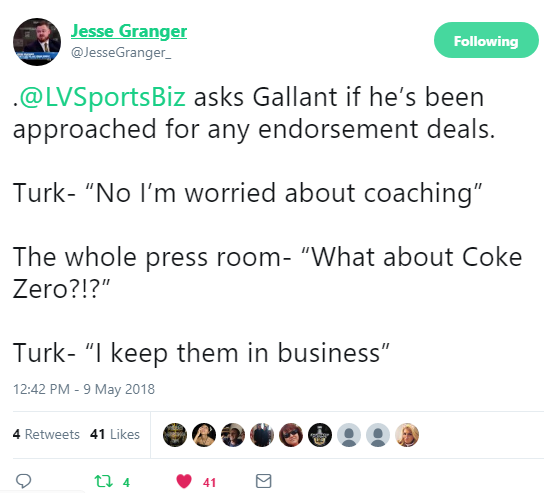 But there was some follow-up chuckles from the assembled Las Vegas sports media. Las Vegas Sun VGK beat reporter summed it up best in his Twitter post.