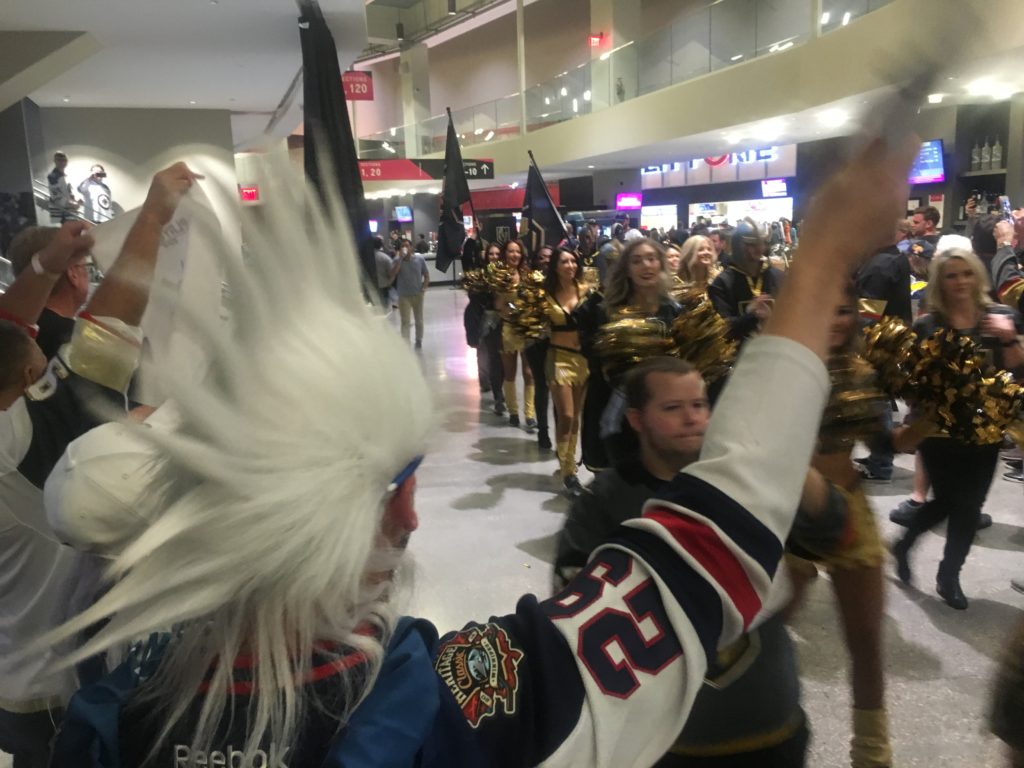 But Friday, there were white-shirted Winnipeg Jets fans scattered in sections, even dominating some rows in the big ice house on the Strip.