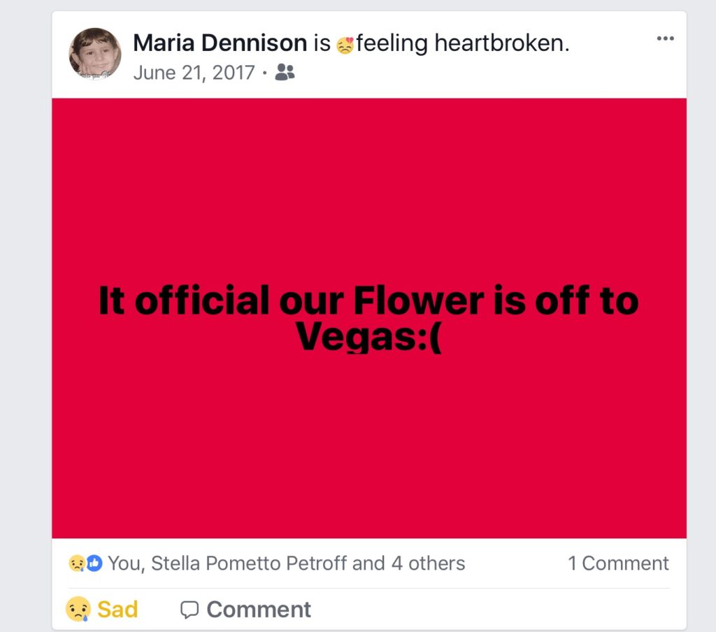 I could hear Maria’s husband, Hughie, in the background and I imagined him rolling his eyes as she went on and on about The Flower. But then she shared a secret about the other man in her life: Because of Fleury, she has been a Las Vegas Golden Knights fan from Day One.