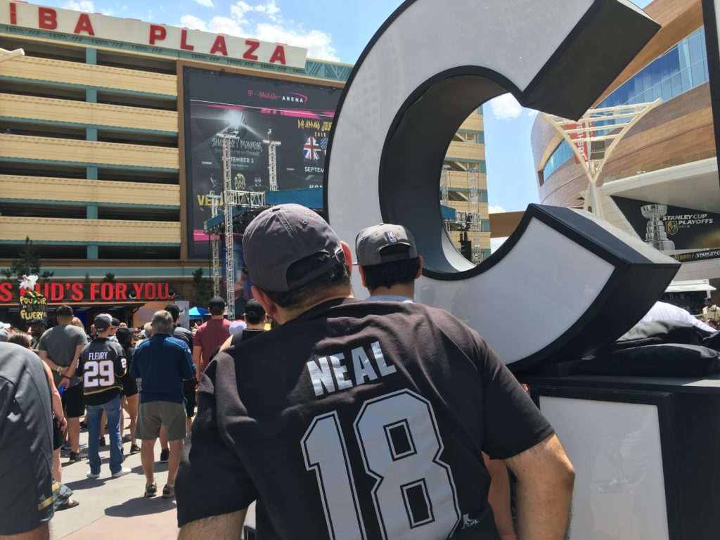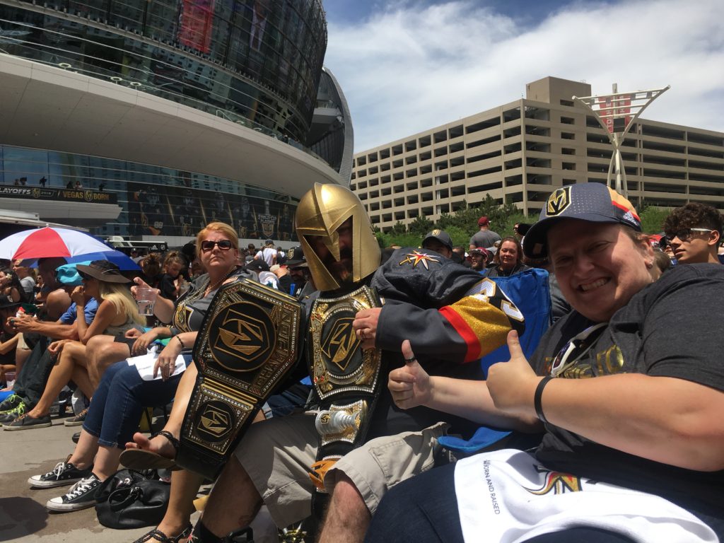 Bear witness to a fan Sunday at the big watch party on the plaza outside T-Mobile Arena.