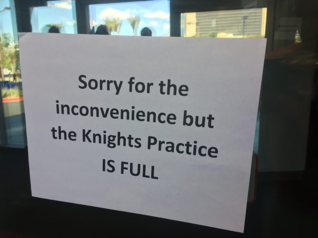 It means the first fans showing up at City National Arena Sunday morning picked up their practice bracelets at 7 a.m. for a Golden Knights practice that begins at 11 a.m. later this morning.