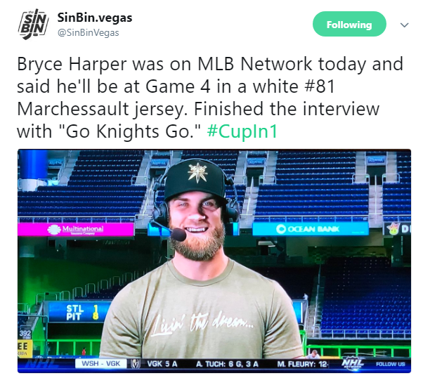 Even Washington Nationals star and Las Vegas Bryce Harper is getting into the act. according to the boys at SinBin.com.