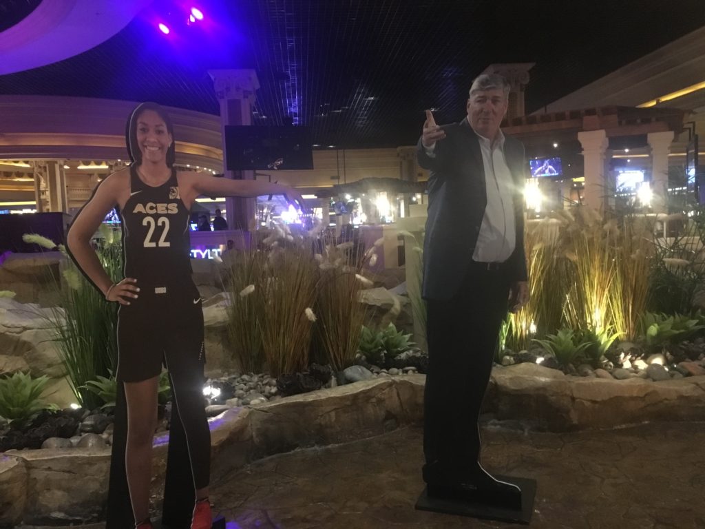 MGM Resorts International is using its properties to promote the Aces. The logo is on the Mandalay Bay marquee and you can pose with these cutouts in the Mandalay Bay casino.