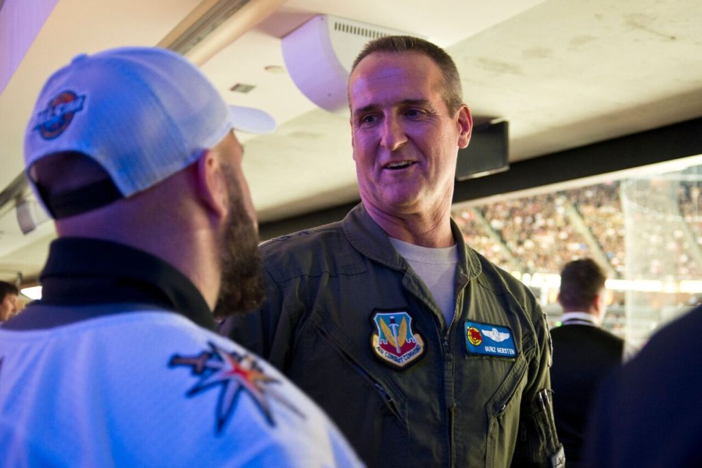 A tap of the stick to LVSportsBiz.com Daniel Clark, who has a terrific nose for news and a photographer’s subtle touch and eye for nuance. He saw the pilots and airmen from Nellis Air Force Base who conducted the flyby above T-Mobile Arena during the pregame. Job well done, men.
