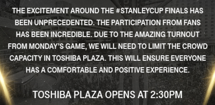 The crowd on Toshiba Plaza was so large Monday that there was new policy instituted Wednesday with the announcement that the Toshiba Plaza would be open at 2:30 p.m. — 2 1/2 hours before the 5 p.m. start.