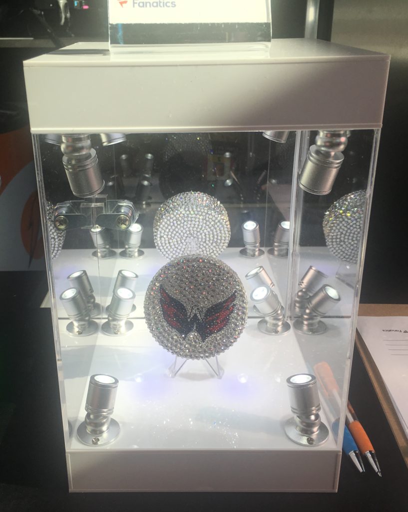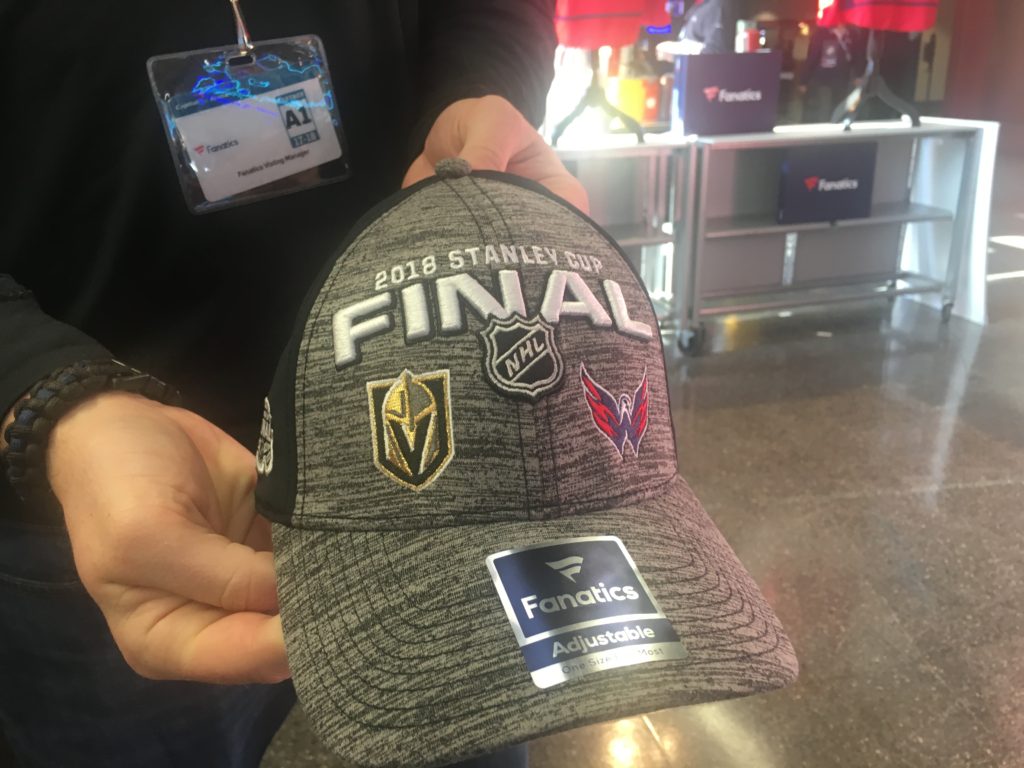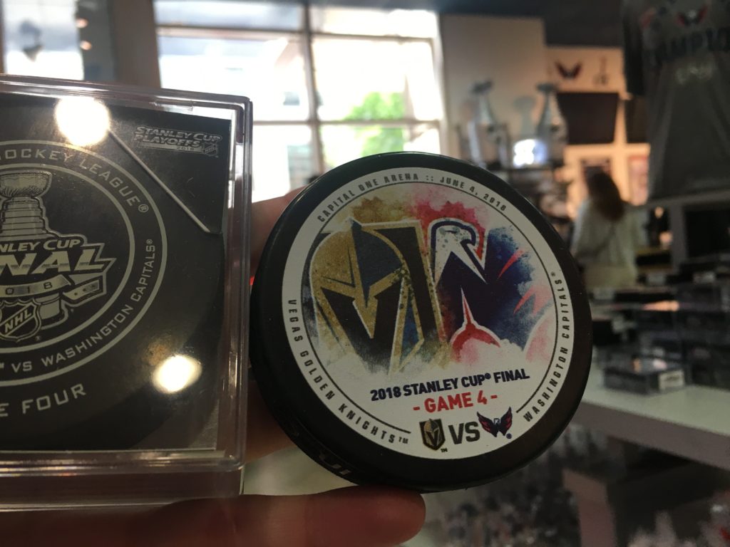 Webb said Golden Knights fans have also stopped in the store to buy Stanley Cup commemorative items that show both the VGK and Caps logos such as pucks showing the SCF game number.