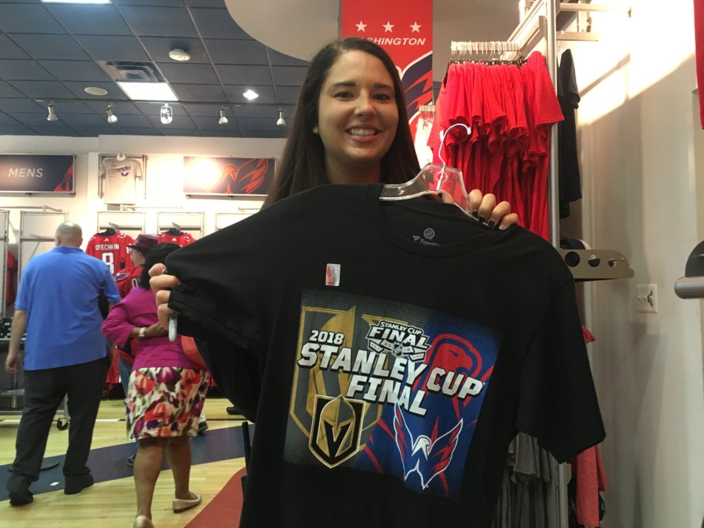 Hannah Webb, a visiting manager for the Capitals team store at Capital One Arena, said retails sales were booming before and during Game 3, which the Caps won, 3-1, over the Knights to take a 2-1 games lead in the Stanley Cup Finals. Game 4 is Monday at 8 p.m. here in The District and 5 p.m. back home in Las Vegas.