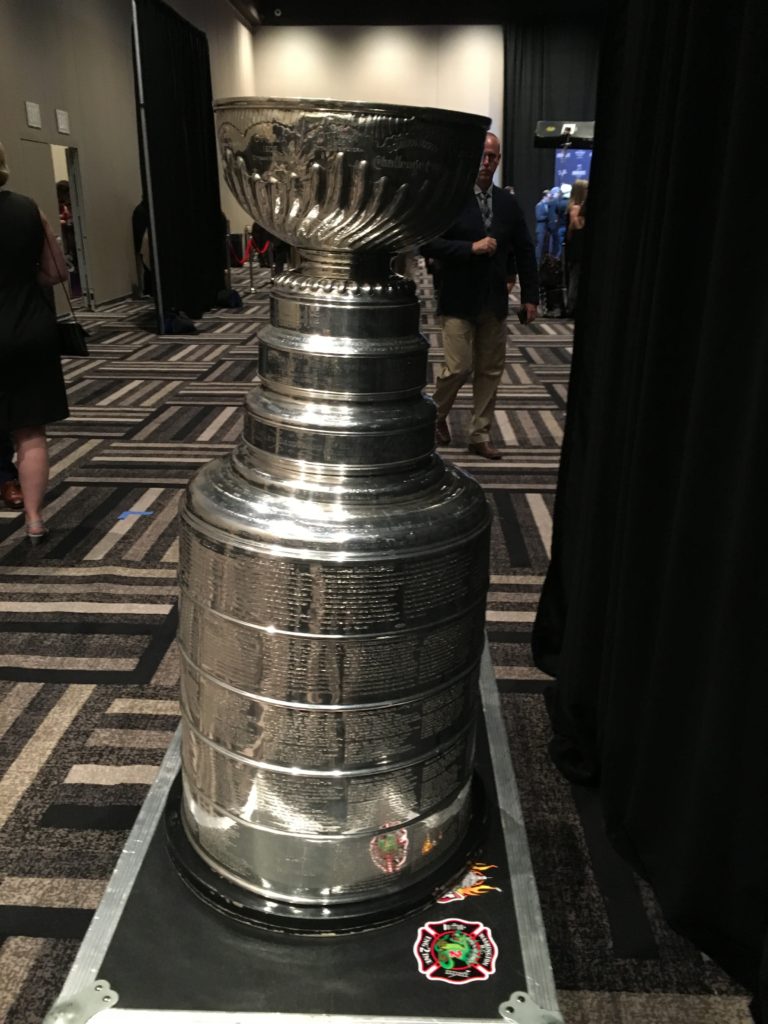 He was on hand with the Cup as players and even Bark-Andre Furry — the Golden Knights’ lucky dog and Jack Russell — walked the red carpet to the awards event.