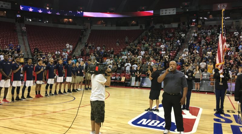 NBA Summer League organizer and agent Warren LeGarie thanked Carnell Johnson for performing the national anthem moments before the first summer league game at Thomas & Mack Center. Fans gave Johnson the thumbs up, too, as the Las Vegan known as “Golden Pipes” strolled off the hardwood. And after the Toronto Raptors and New Orleans Pelican tipped off the second of 82 summer league games, the honor guard members wanted a photo with Johnson in a back Thomas & Mack hallway.