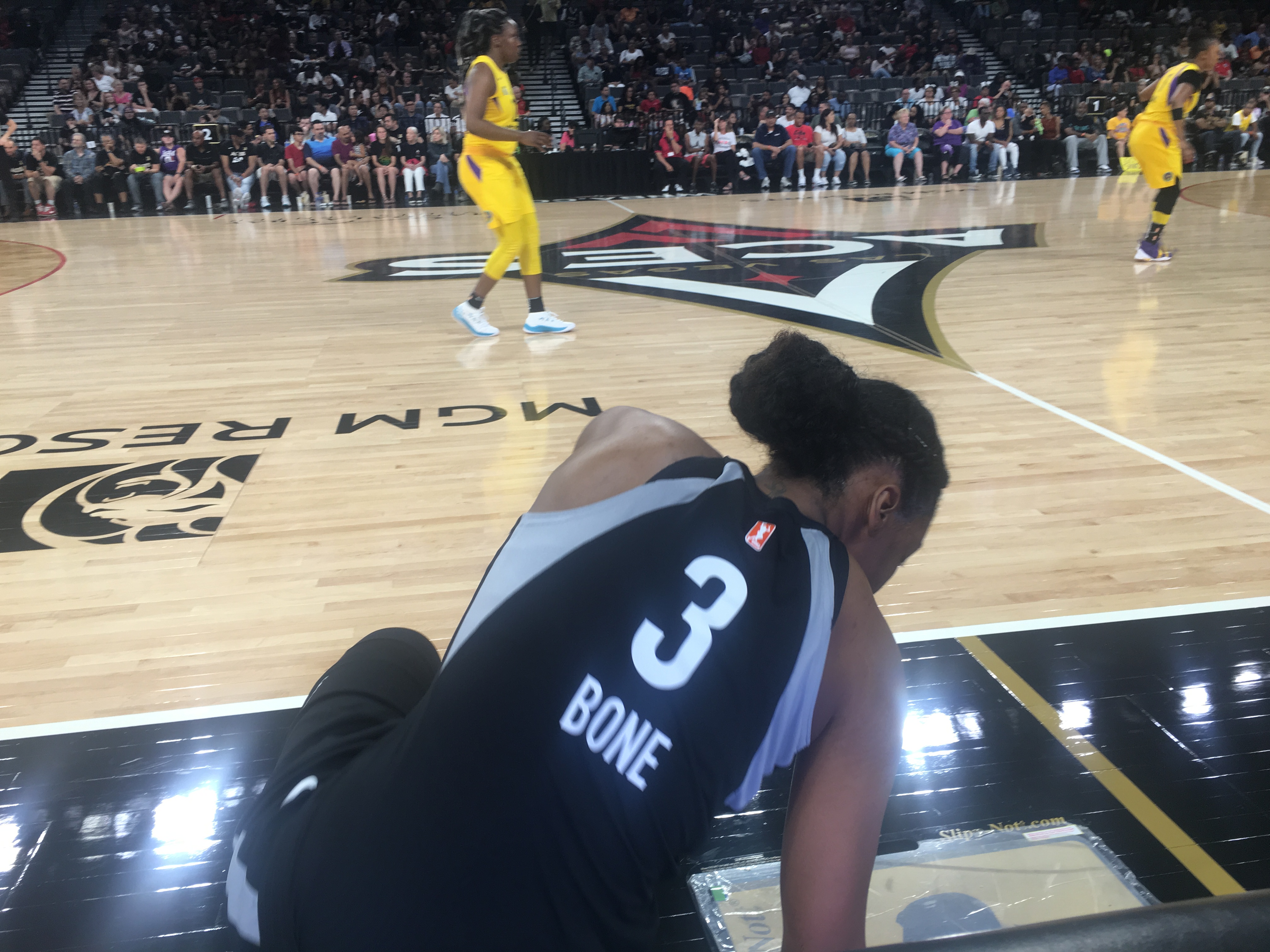 While WNBA player pay has received much attention lately, the 26-year-old Bone has quietly worked off the court for slightly more than a year to generate outside income via hair extension sales. Sunday was a tough day for Bone and the rest of the Aces, as the Las Vegas Sparks came to Mandalay Bay Events Center and outscored the Las Vegas squad, 35-15, in the fourth quarter en route to a 99-78 drubbing of the Aces after three close quarters. A starter, Bone played 13 minutes and 22 seconds and made two of four shots for four points and grabbed five rebounds.