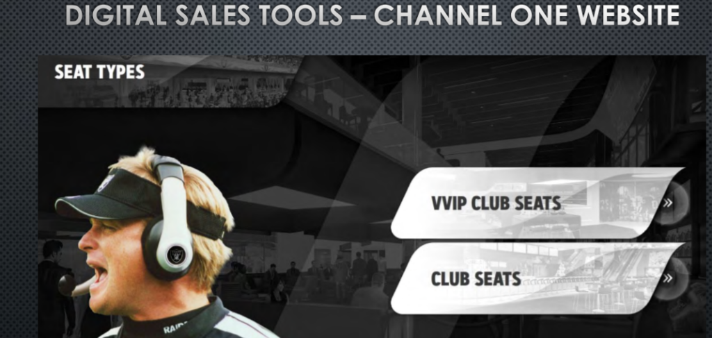 In its personal seat license marketing info for the club levels, the Raiders have enlisted coach Jon Gruden — who used to coach the Raiders at one time — in a power point presentation.