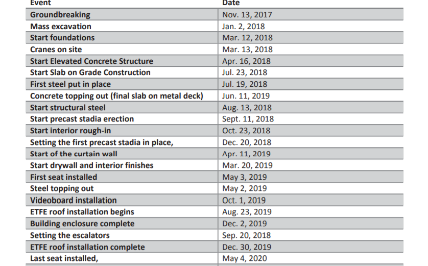The stadium construction schedule was previously reported by LVSportsBiz.com, with the outline of the venue taking shape.