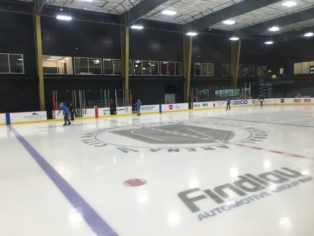 Ice skaters shared the Golden Knights training center rinks with venue improvement workers Thursday as the City National Arena gets fresh paint and an expanded team store.