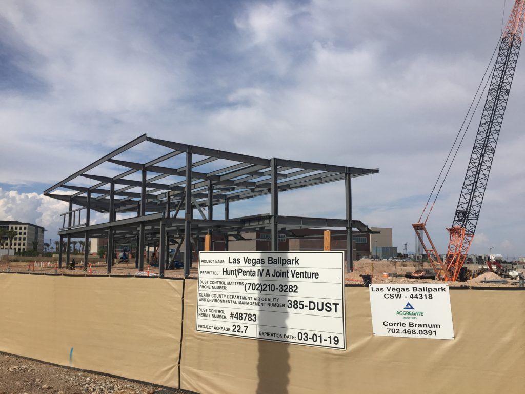 Next-door to City National Arena Summerlin master developer Howard Hughes Corporation is building the Las Vegas Ballpark for its Triple A minor league baseball team. And when LVSportsBiz.com says it’s next-door, we mean literally next to the ice rink facility. Take a look.