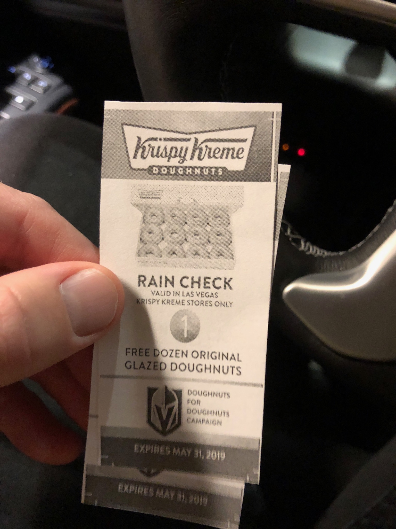 Fleury posted two straight shutouts over San Jose Saturday and Calgary Friday — which meant a run on free dozens of Krispy Kreme doughnuts for VGK fans who attended either one of the games. LVSportsBiz.com met a fan who went to a Krispy Kreme outlet where they had run out. But he received a rain check good for a year.