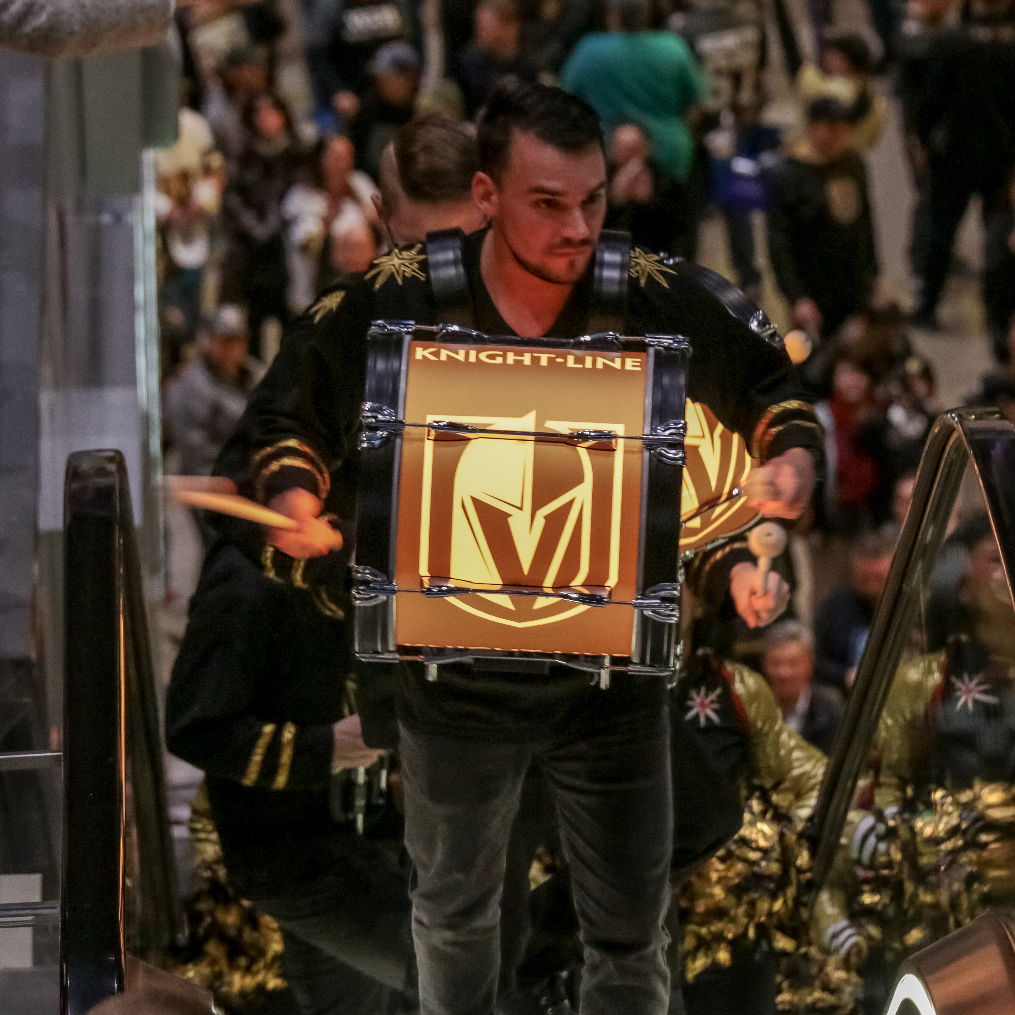 The march of the Golden Knights mascots, Vegas girls and VGk cheerleaders is a crowd-pleaser.
