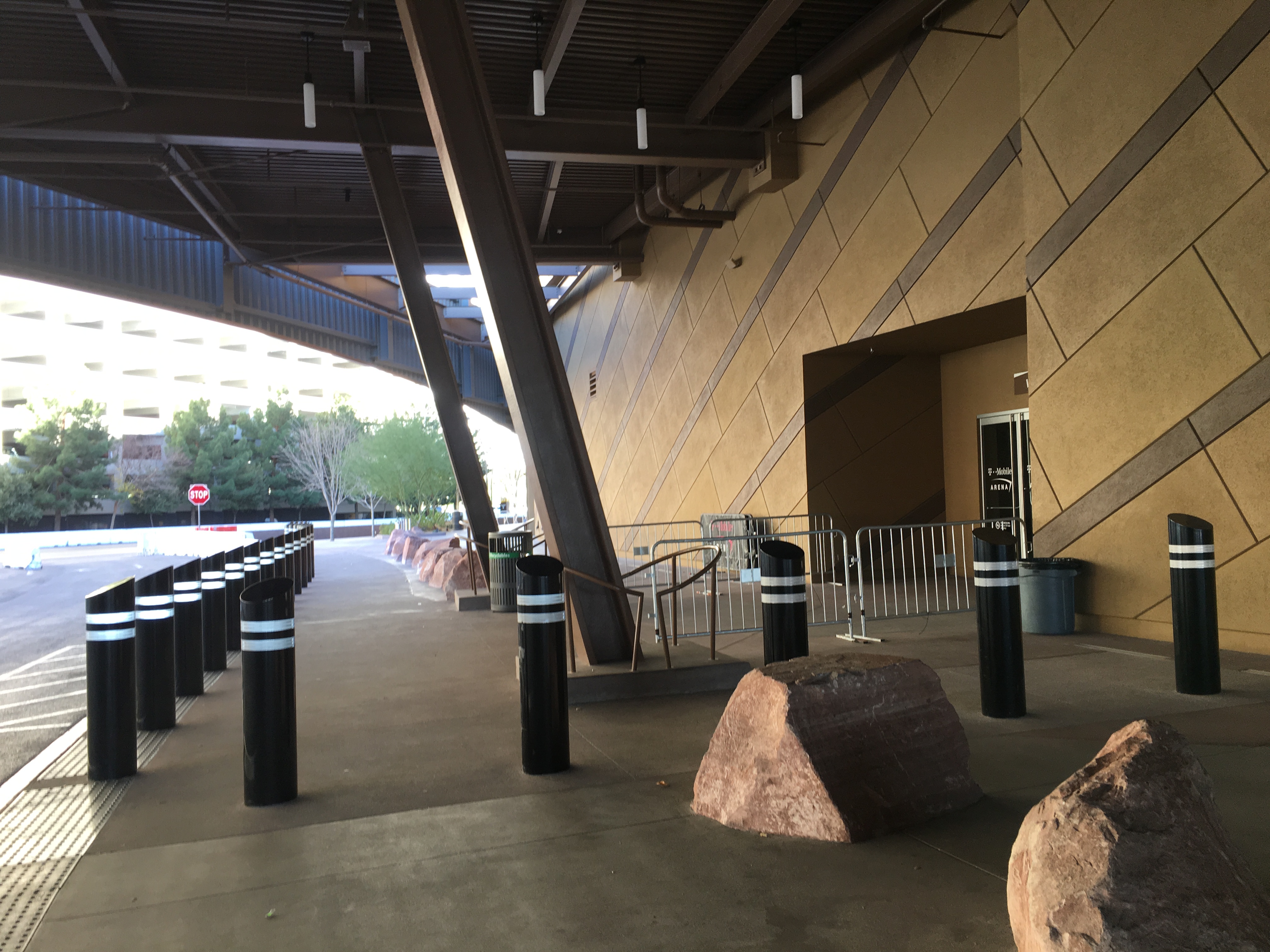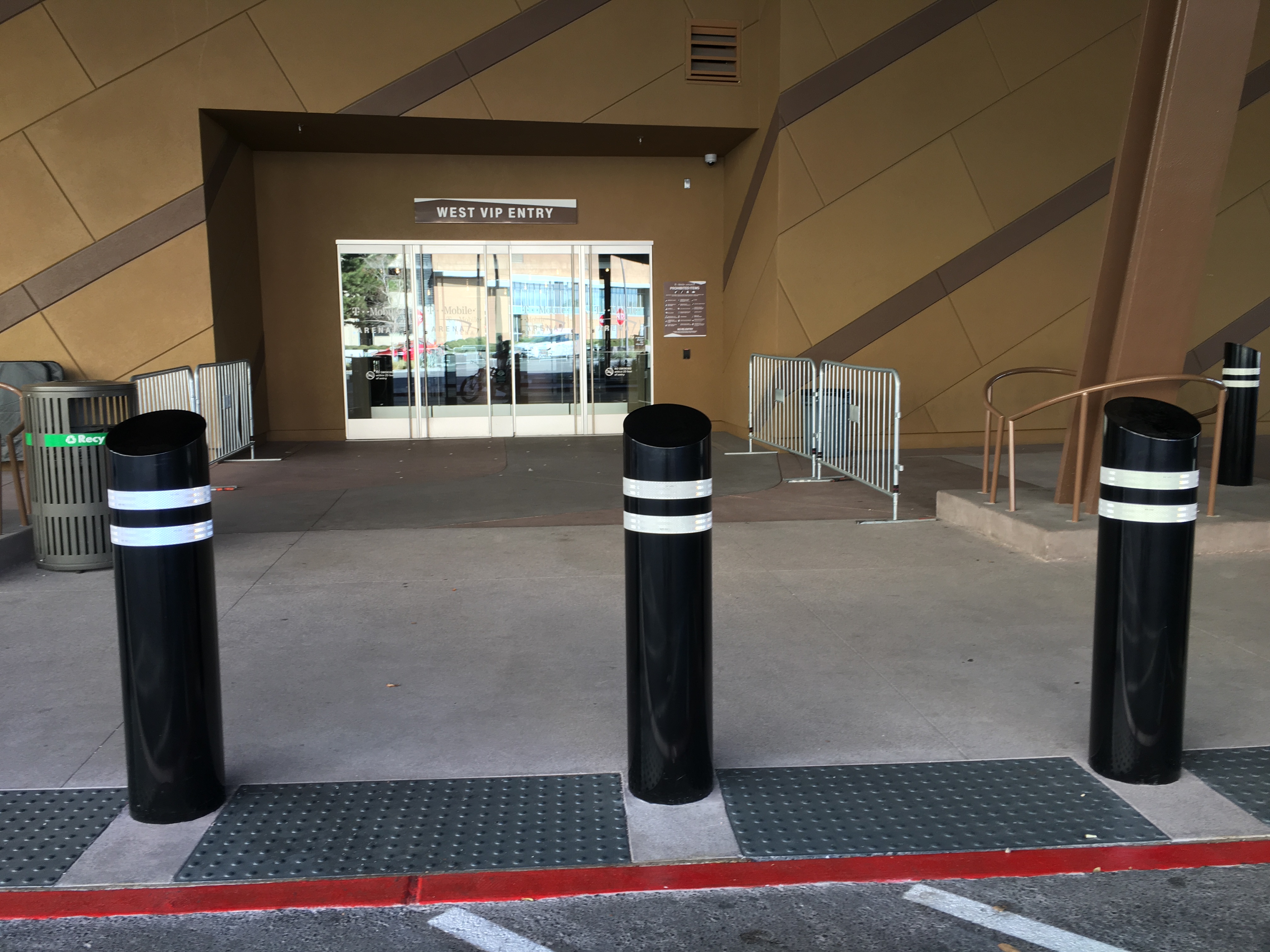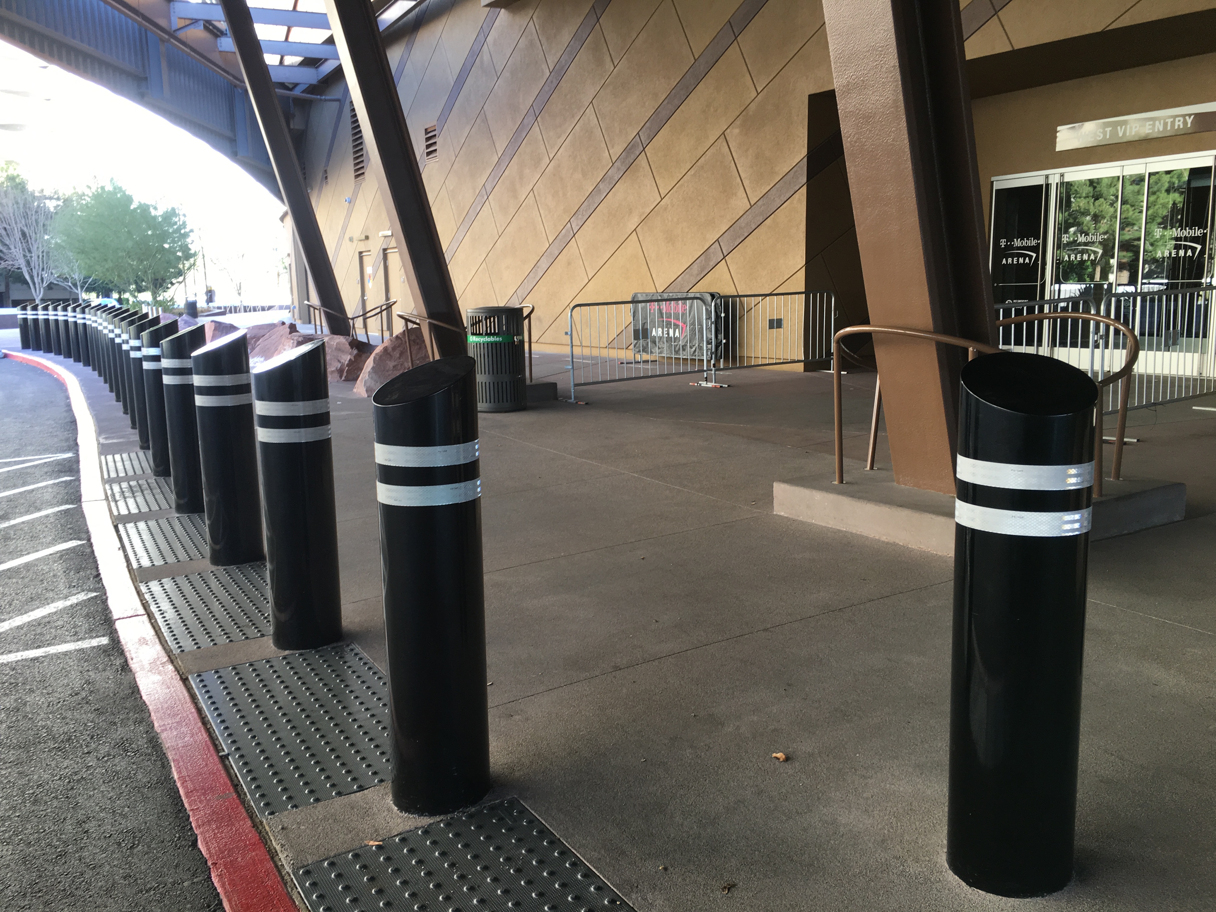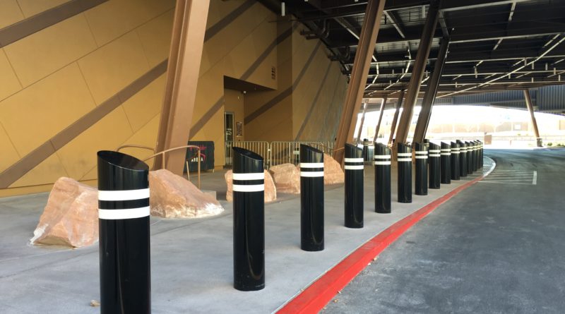 T-Mobile Arena has installed a couple dozen heavy steel posts known as “bollards” to protect arena visitors, guests and workers near the West VIP Entry on the west side of the venue.