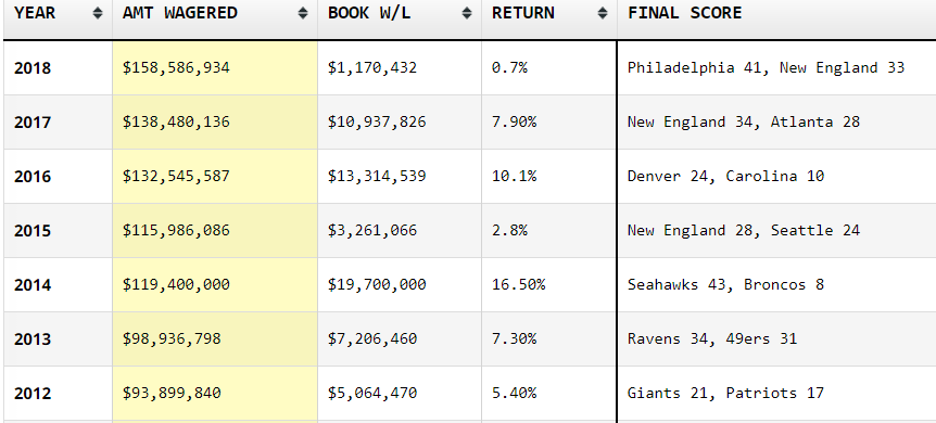 The sportsbooks in Nevada were quite busy for Super Bowl 52, taking in a record $158.5 million in wagers and I would not be surprised if that record is broken in 2019.
