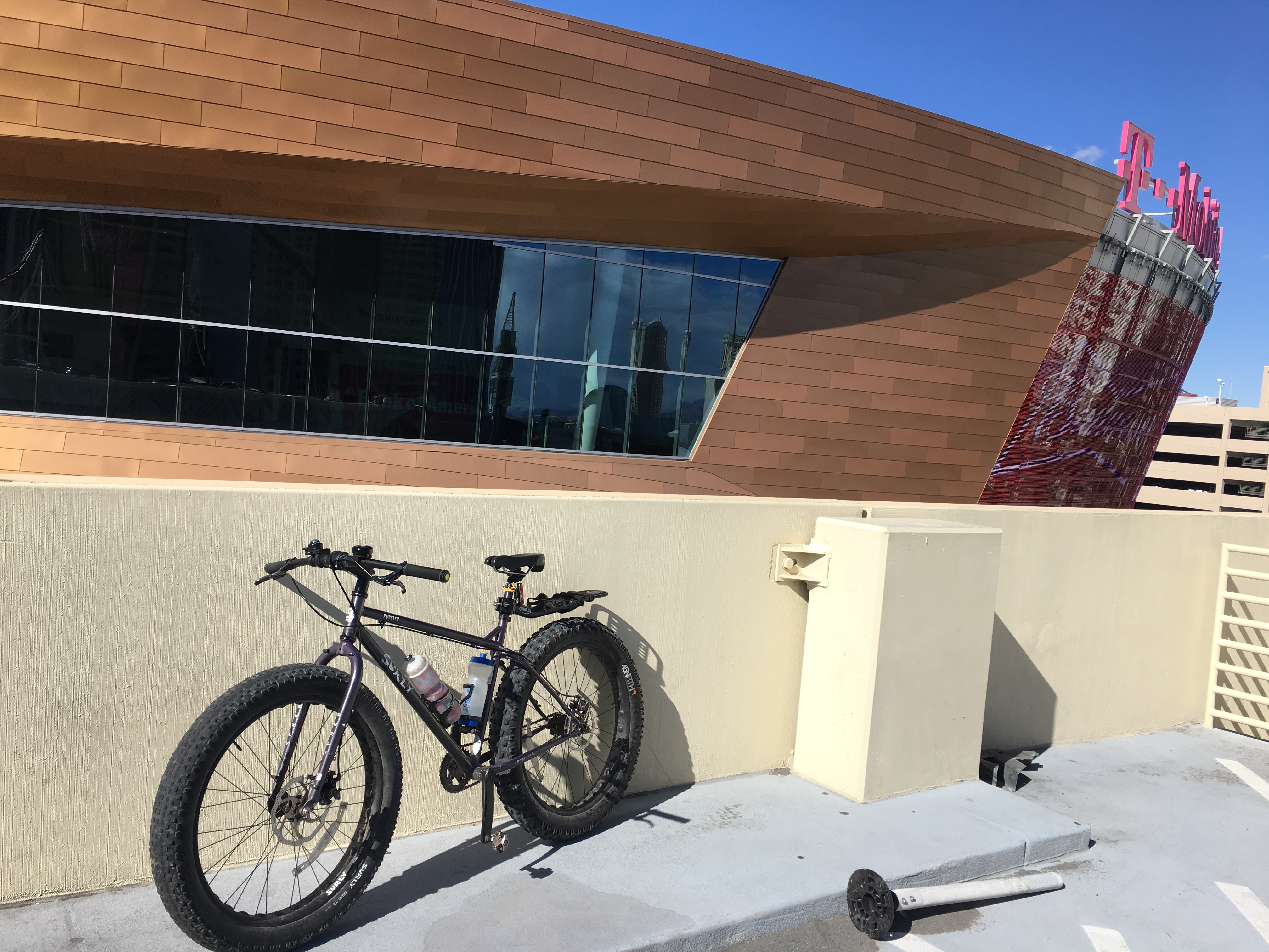 And when you’re on a bicycle, you get to use the NY-NY parking garage for free. The top offers some cool views.