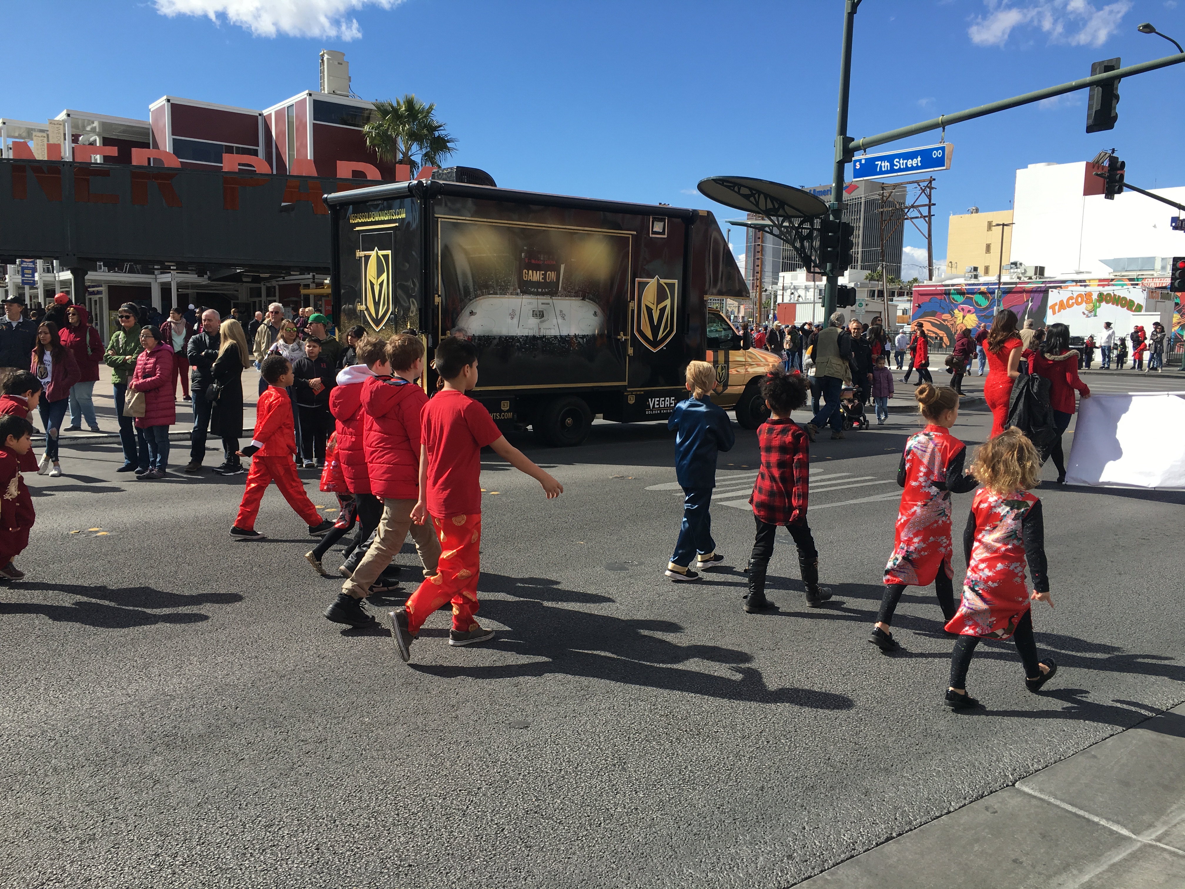 About six miles to the north in downtown Las Vegas, the Golden Knights event truck was parked at the Chinese New Year parade route.