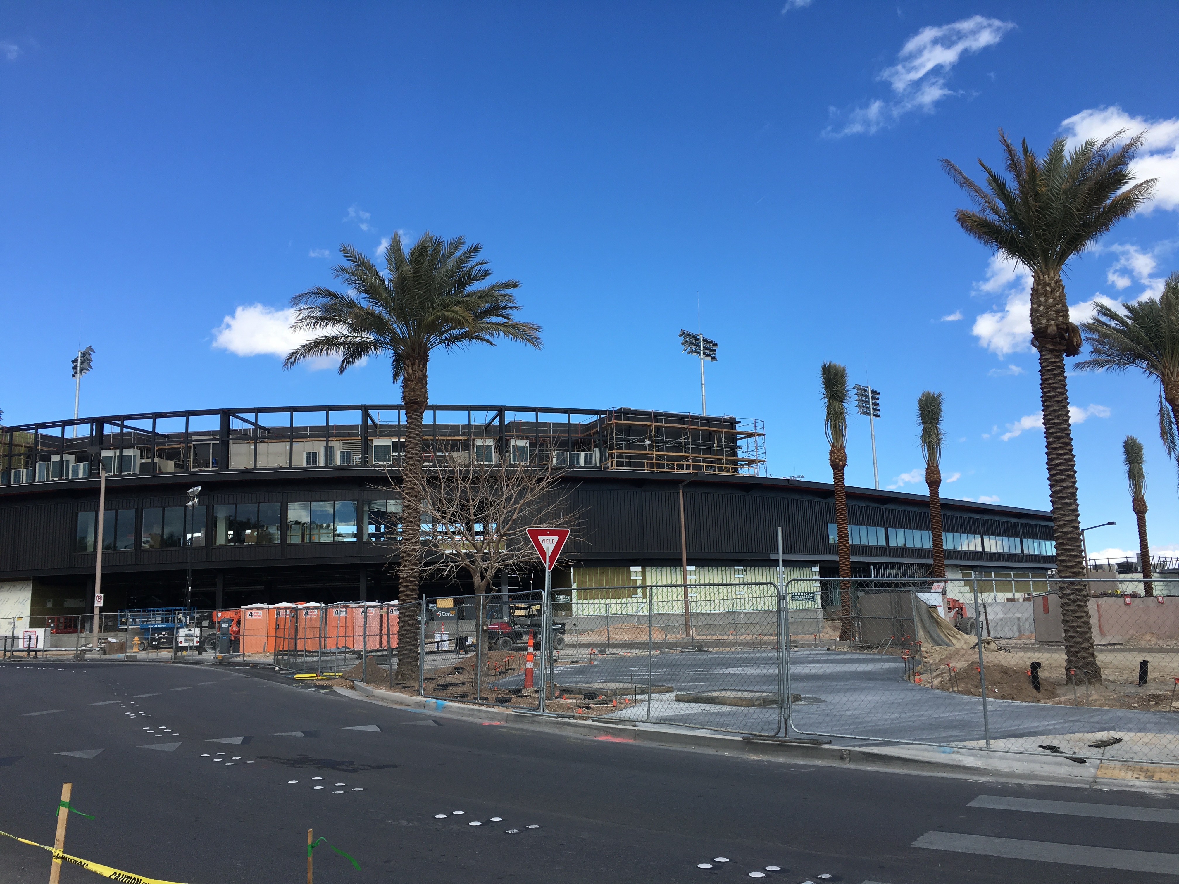 And later that morning, cement was becoming concrete on a sidewalk in front of  the Las Vegas Aviators’ new ballpark that’s scheduled to open April 9.