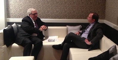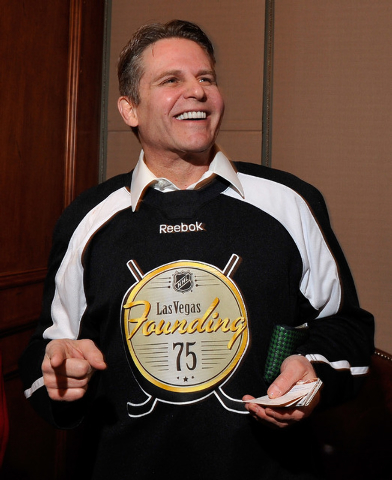 Gavin Maloof drops a puck to get the Vegas Wants Hockey ticket campaign officially off an running on Feb. 10, 2015. Bill Foley (center) and NHL Commissioner are in the background.