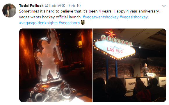 In on the ticket deposit initiative was a young ticket guy named Todd Pollock, who studied sales and sponsorships at Baylor and would go on to become Vegas Golden Knights employee number one and is the VGK vp for ticketing and suites. He marked the four years with a post on Twitter Sunday.