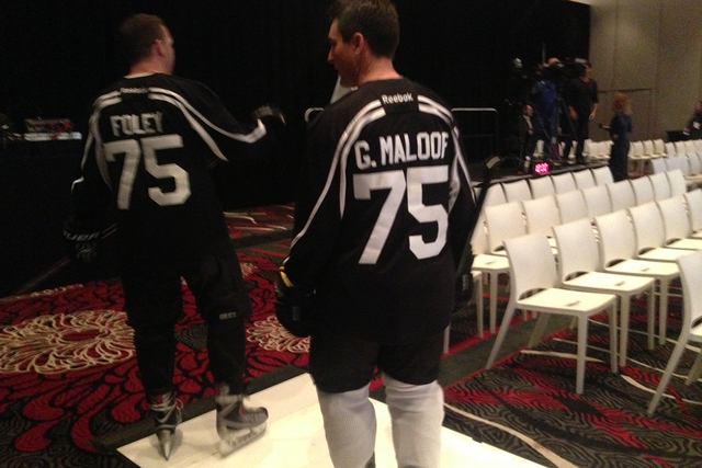 They set up a skating surface in the MGM Grand room for two men’s hockey league players to skate in and then face each other as Gavin Maloof dropped a puck at the news conference to initiate the ticket campaign.