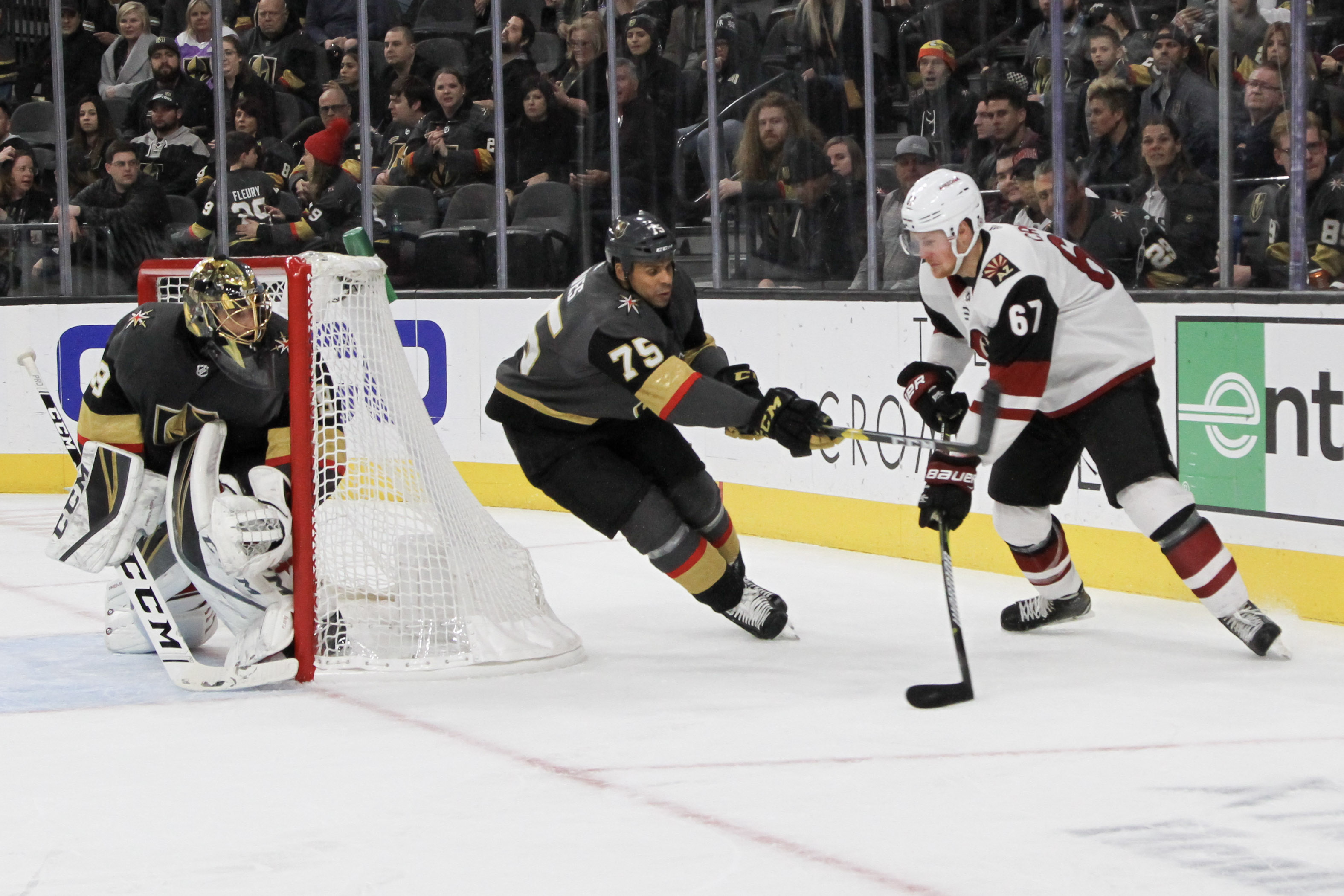 The Coyotes scored three goals in the final period for the 5-2 win. Not even crowd igniter Cameron Hughes, a fan favorite for his enthusiastic dancing style and T-shirt tosses into the crowd, could not deliver a W for the Golden Knights.