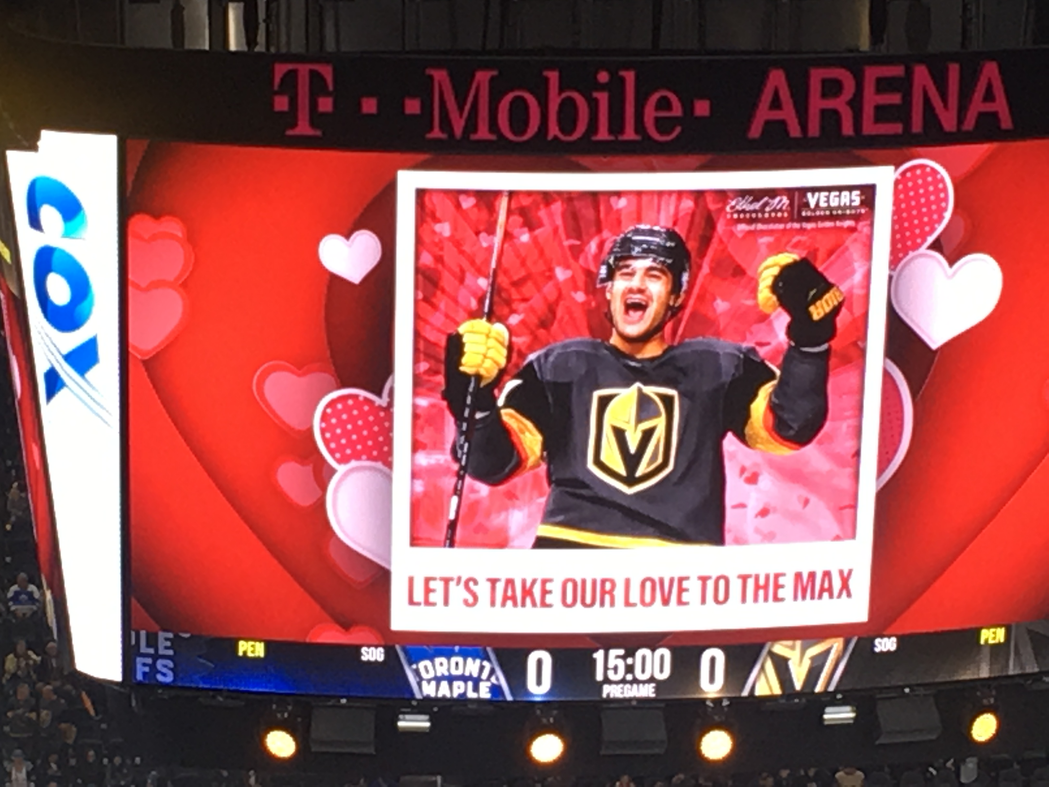 A year ago on Feb. 15, 2018, the VGK defeated the Edmonton Oilers and in between periods 1 and 2, Steven surprised Cari with a wedding proposal and then the wedding ceremony was staged between periods 2 and 3. It may have been a first — a couple getting engaged AND married in-game at a major league contest.