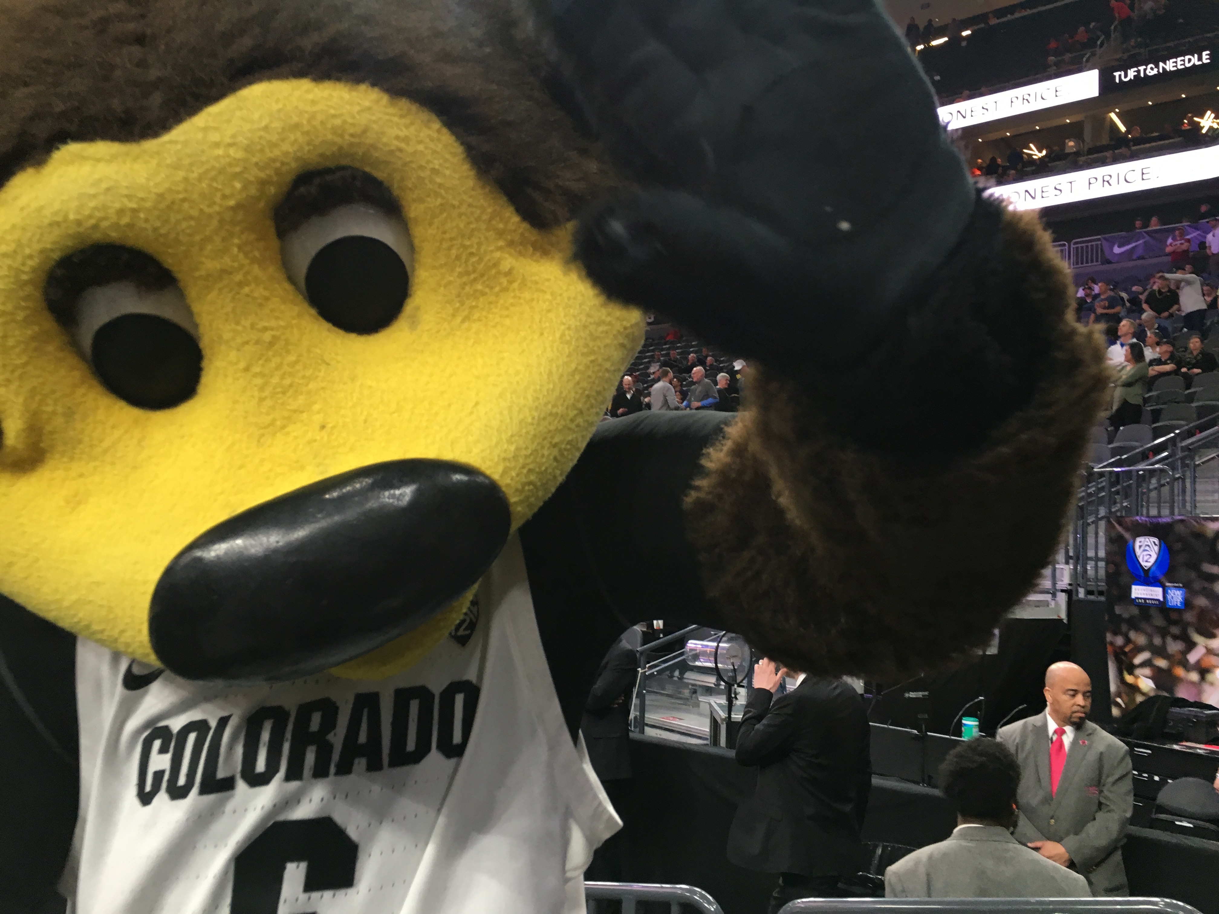And Colorado’s buffalo — a real one — can’t come into T-Mobile Arena so the Buffs have to settle for this character named, “Chip,” as Colorado takes on Cal in the Pac-12.