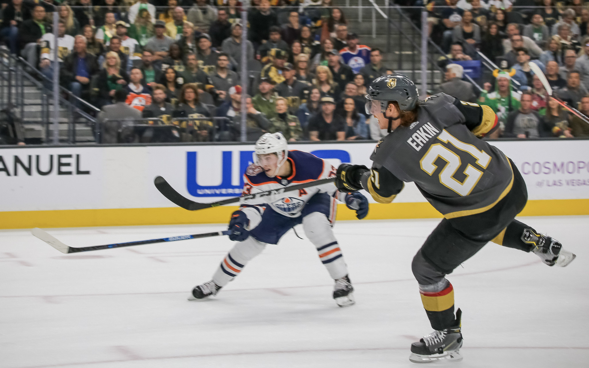 Former Oilers great Wayne Gretzky was seen in the arena. But UFC’s Conor McGregor, who dropped the puck to start the Bruins game Saturday, was not seen in T-Mobile Arena Sunday. By the way, McGregor is still suspended, too.